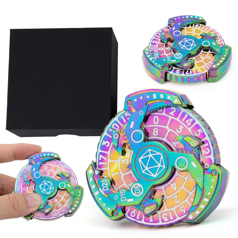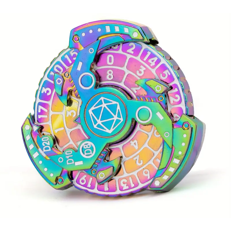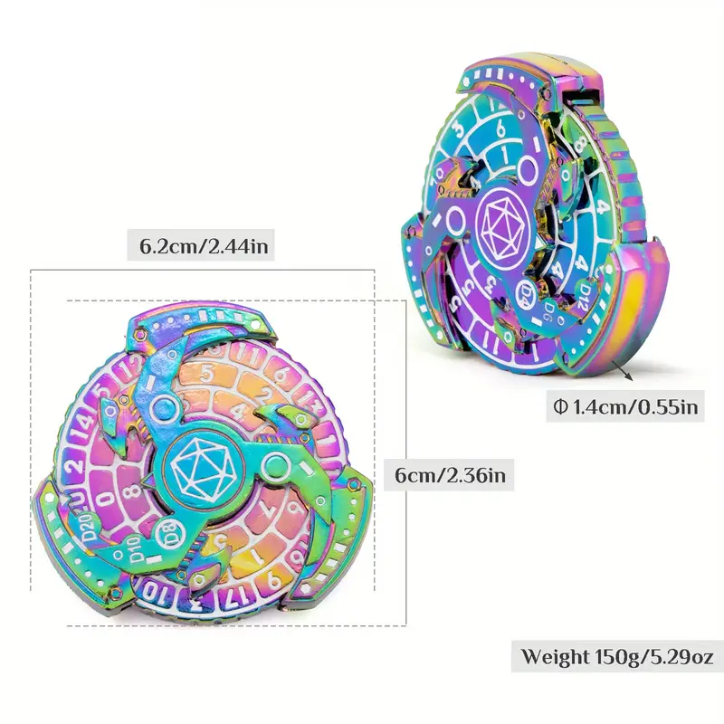 Wszechkostka - jedna kostka by wszystkimi rządzić. Przedstawiamy wyjątkowy dodatek do Twojej kolekcji akcesoriów RPG! Ten elegancki, wielofunkcyjny spinner łączy w sobie funkcjonalność i styl, oferując doskonałe rozwiązanie do losowania wyników w trakcie gry. Jeden spinner zastępuje cały zestaw kości RPG. Idealny dla graczy RPG, którzy szukają alternatywy dla tradycyjnych kostek, a także dla kolekcjonerów i miłośników fantasy. Ten spinner doskonale sprawdzi się w każdej sesji gry, dodając odrobinę magii i emocji do Twoich przygód.
