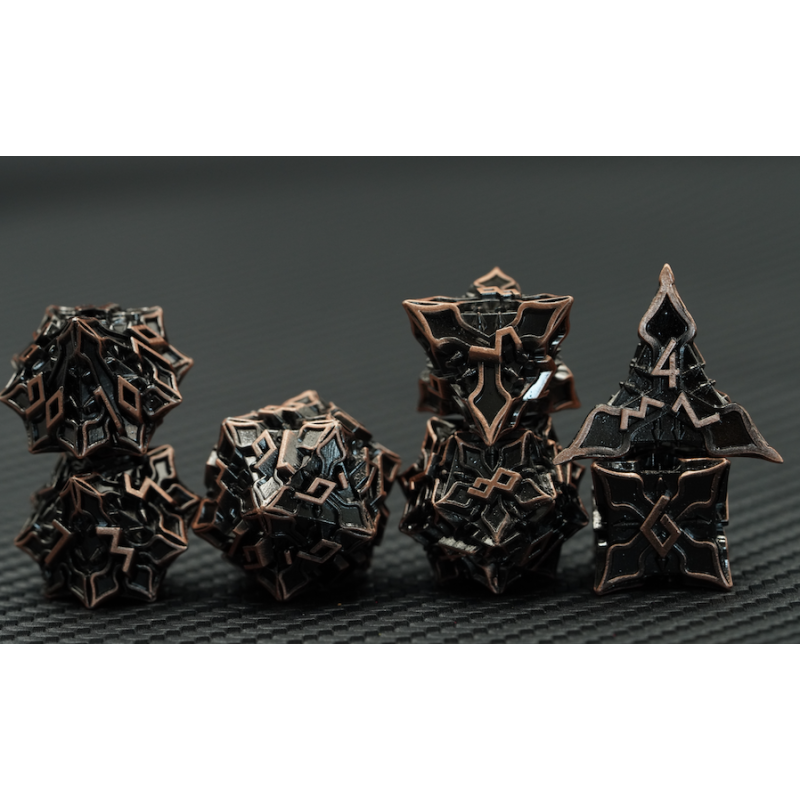 Zestaw siedmiu metalowych kości do gier fabularnych