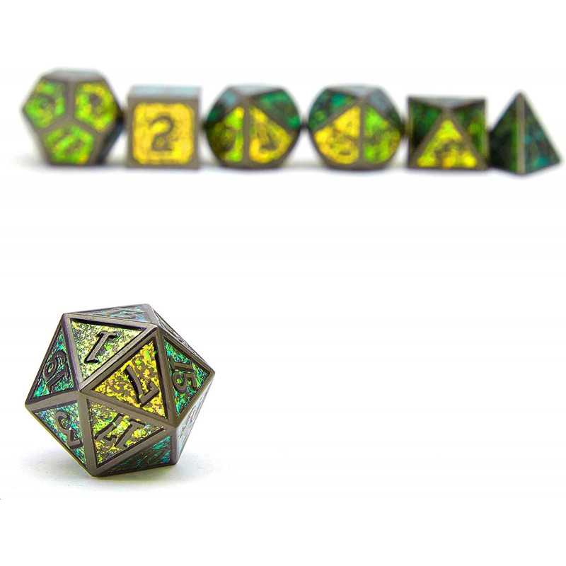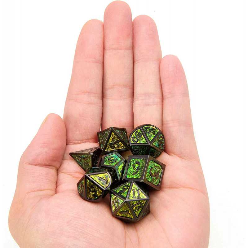 Zestaw siedmiu metalowych kości do gier fabularnych