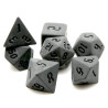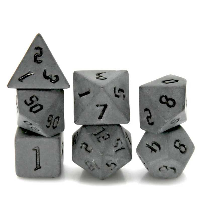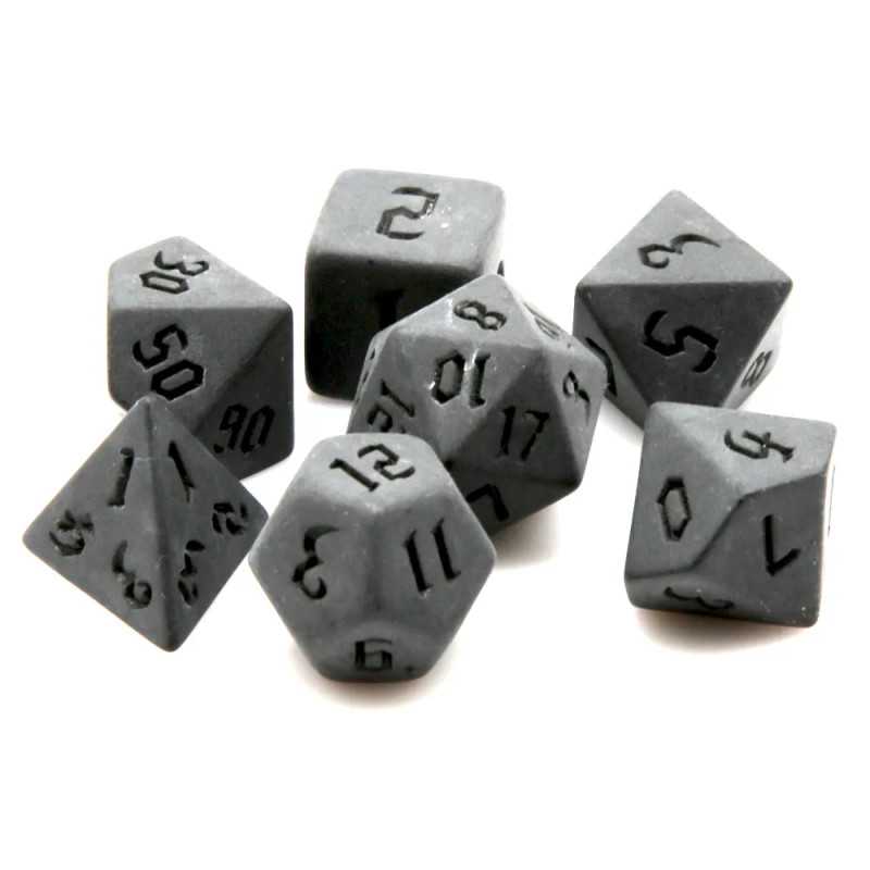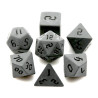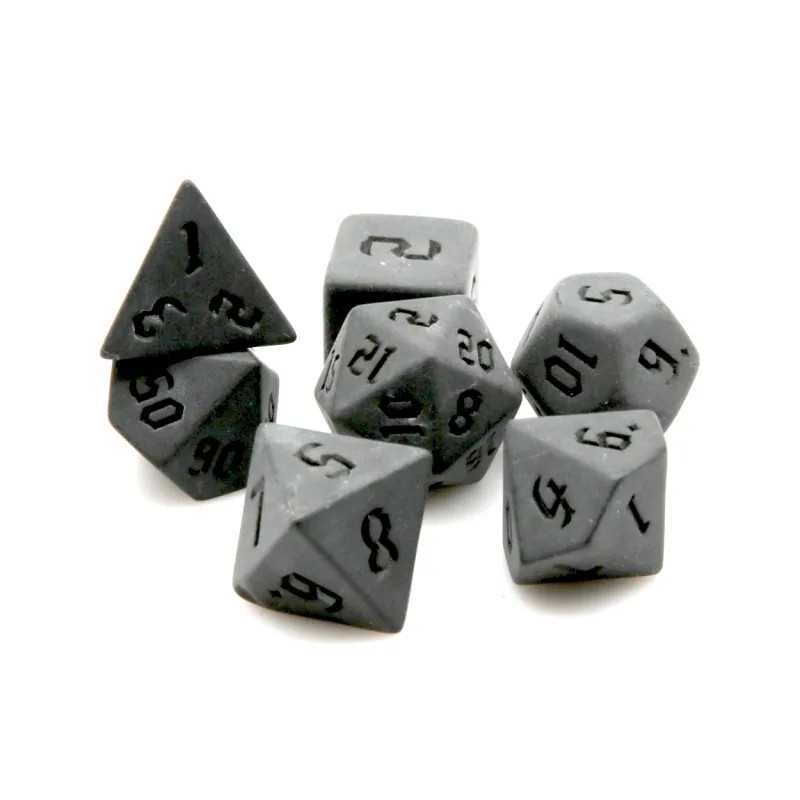 Komplet siedmiu klasycznych, matowych kości. Niezwykle wysoka jakość odlewu, precyzja żłobienia oraz malowania numerów, czynią z nich podstawowy wybór dla wielu graczy, zarówno początkujących, jak i zaawansowanych.