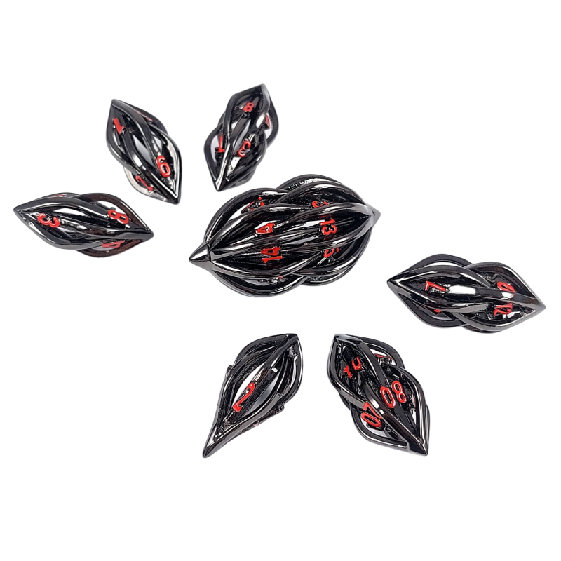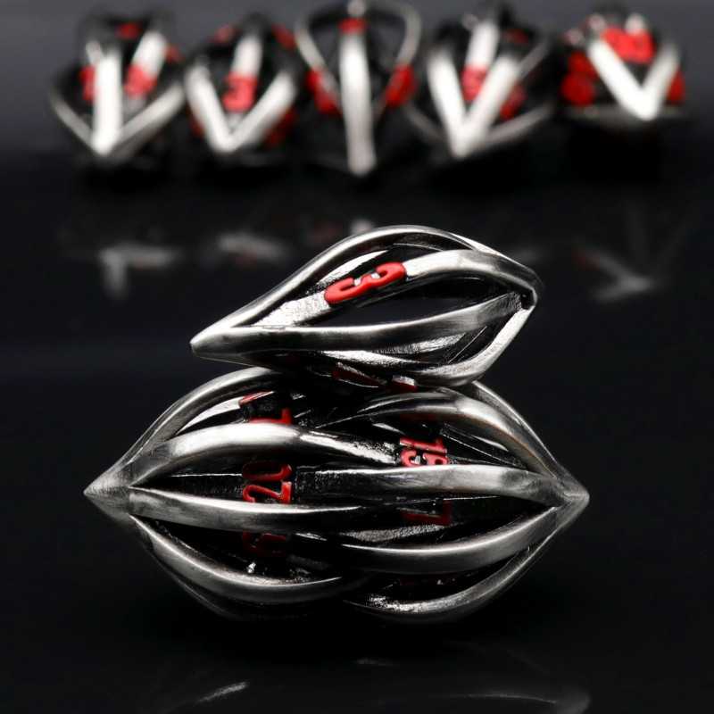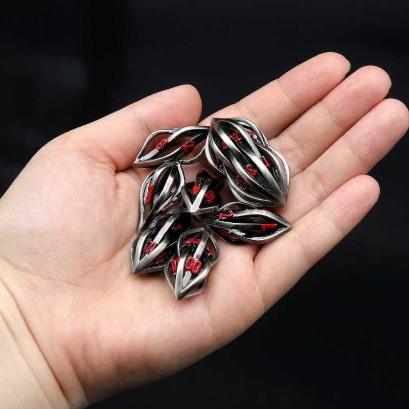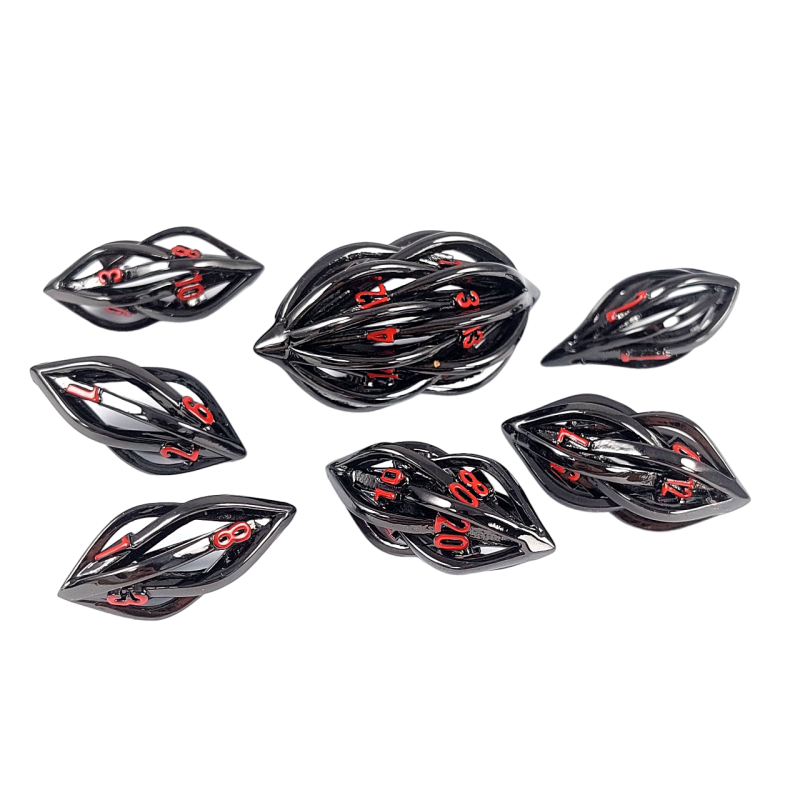 Poszukujesz kości na sesję, co? Tak myślałem, masz to wymalowane na twarzy. Jestem doświadczonym kupcem, znam potrzeby moich klientów w chwili, gdy przekroczą próg mego sklepu. Równo z dzwoneczkiem. Tak, obsługiwałem już wielu petentów, raz przyszedł do mnie sam baron. Widzę po Twoich oczach, że Ciebie nie zadowolą pierwsze lepsze egzemplarze, o nie. Ty przyszedłeś tu po coś specjalnego, zdradza Cię blask w kącikach źrenic. Ty chcesz unikatu na skalę światową. Po coś, co uczyni ze zwykłej gry misterium ku chwale wyobraźni. Dobrze trafiłeś, mam coś w sam raz dla Ciebie. Kości, które wybrały sobie kształt grotu, struktur wwiercających się w rozgrywkę. Pochodzą w zaświatów. Posiadają własną świadomość i bywają kapryśne, ale zapewniam, nigdzie nie znajdziesz drugich takich. Weź je, jeśli się odważysz.