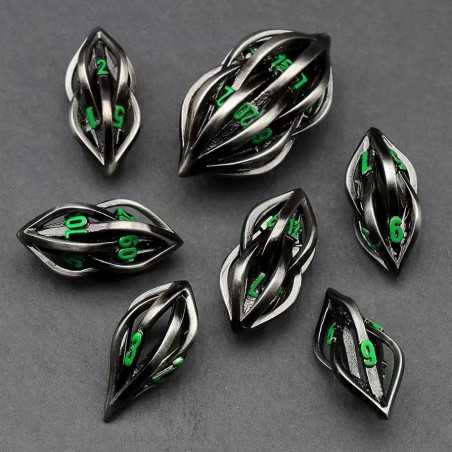 To falujące kształty architektonicznej struktury wnętrza statku kosmicznego w specyficznym art nouveau. W wydaniu obcej cywilizacji mogącej zaginać płynny metal i krystalizować go samą siłą umysłu. Przybyli do nas, gdyż uważają nas za mięso z kilkoma ciekawymi myślami. Jesteśmy dla nich krowami i świniami. Urządzają sobie na naszych włościach igrzyska. Ciskają włóczniami o spiralnym grocie, którymi sterują umysłem – dlatego zawsze trafiają w cel. Z pięknych dziewic robią baranki. Żywe ofiary ubijają na metalowym ołtarzu ku chwale ich technobóstw w Mysterium Zieleni i Czerni. Zieleń dla toksyczności i czerń dla cienistych związków chemicznych spoza galaktyk. To na nich zbudowane są fundamenty ich ciał i egzystencji. Wybranych ulubieńców nagradzają spiralnymi kośćmi za bycie posłusznymi szczeniaczkami. Potem odlatują. A my żyjemy w strachu przed ponownym misterium.
