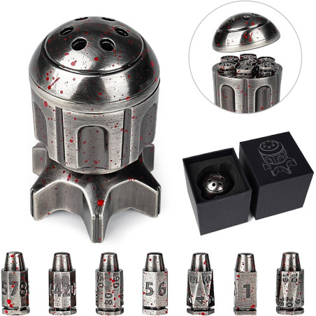 Zestawy metalowych kości do gry wyróżnia ponadprzeciętna odporność na uszkodzenia. Choć sprawiają wrażenie cięższych, są dobrze wyważone i wygodne w użyciu. To produkt wysokiej jakości, stanowiący prawdziwy niezbędnik zaawansowanego gracza. Z doświadczenia wiemy, że każdy fan tytułów RPG i planszówek w końcu decyduje się na zakup metalowych kostek. Przyczyny są dwie: wygoda i elegancki wygląd, który podkreśla wagę wykonywanych rzutów.