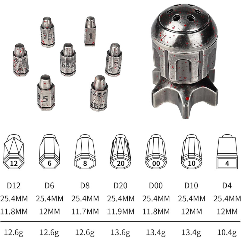Zestaw siedmiu metalowych kości do gier fabularnych