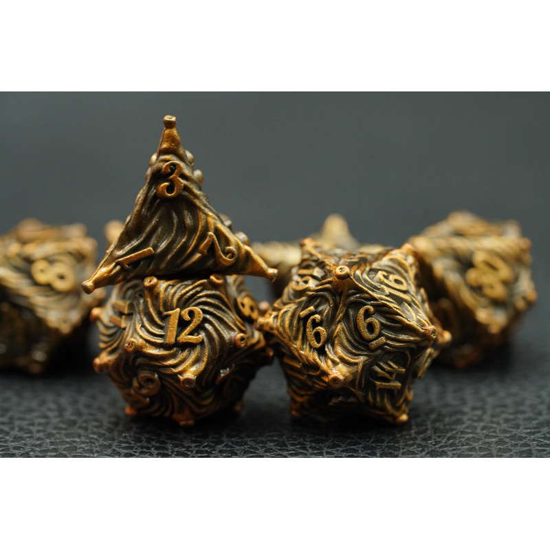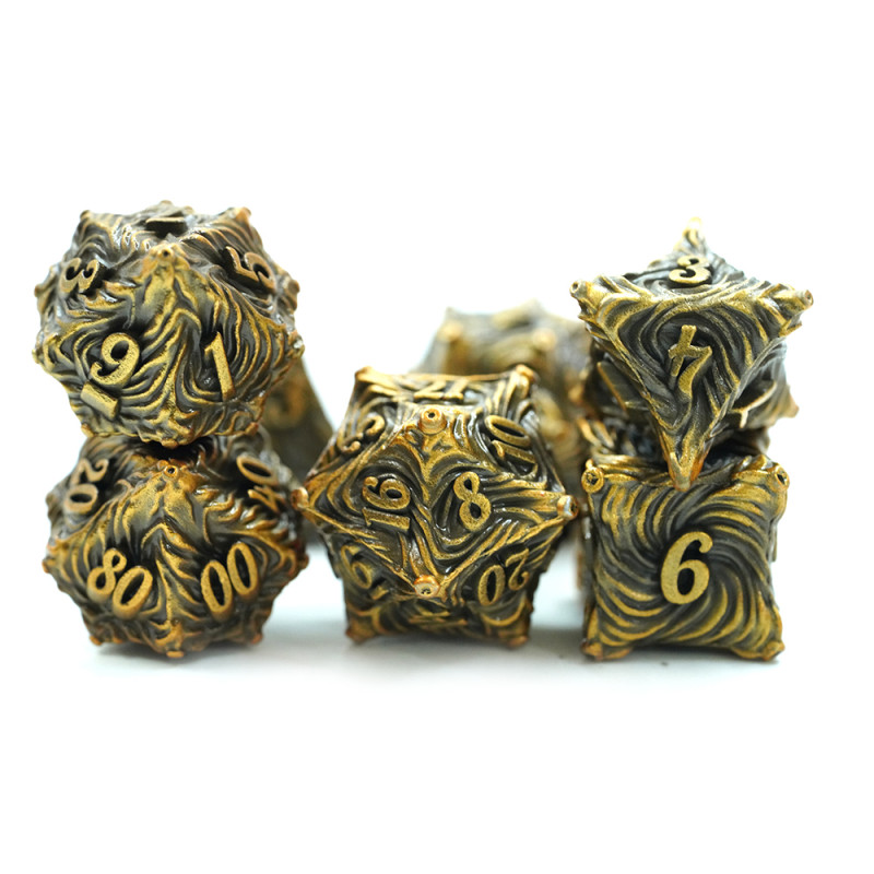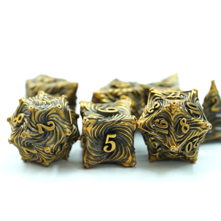 Zestaw siedmiu metalowych kości do gier fabularnych