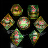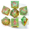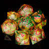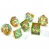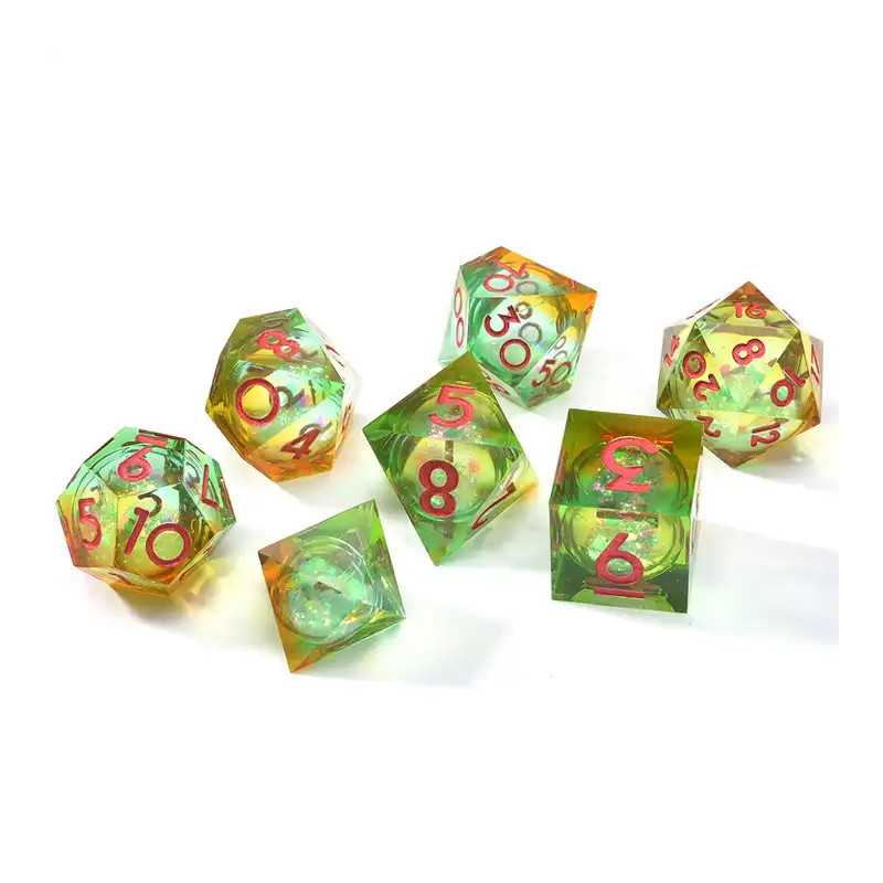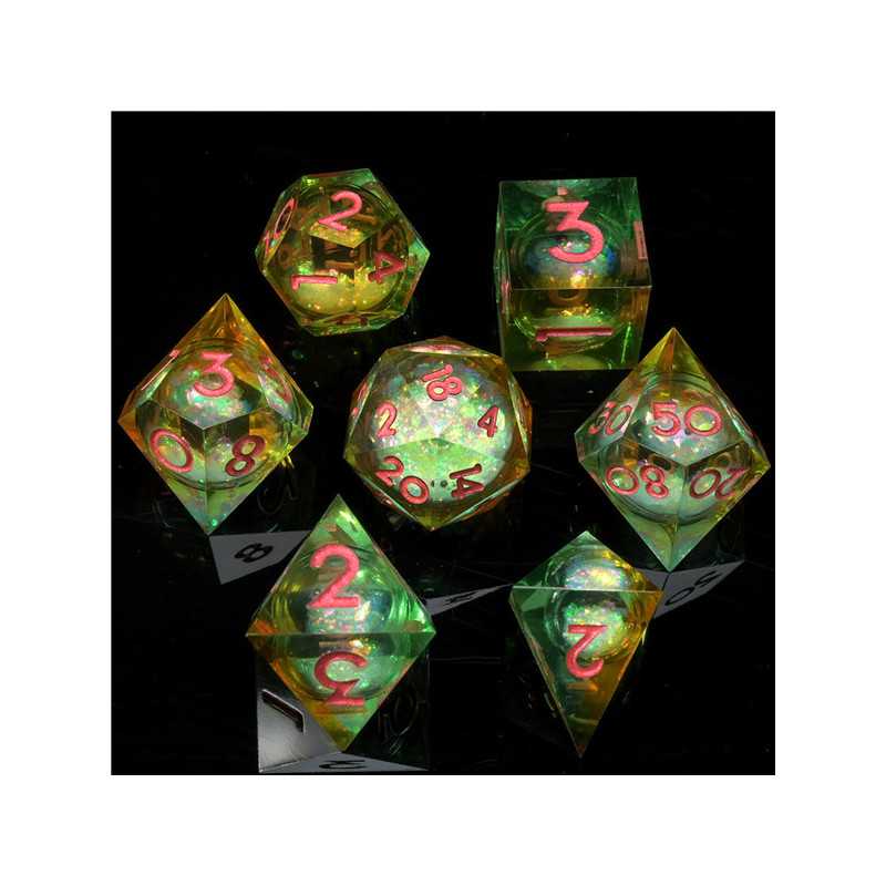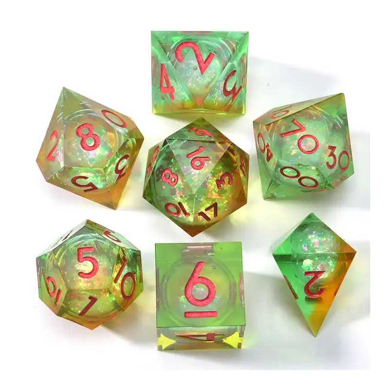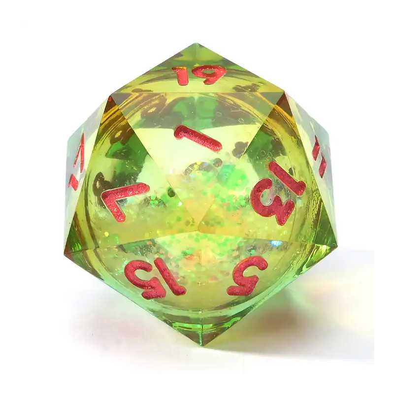 Kostki mają płynne wnętrze - po rzucie widać w nich pływający brokat.