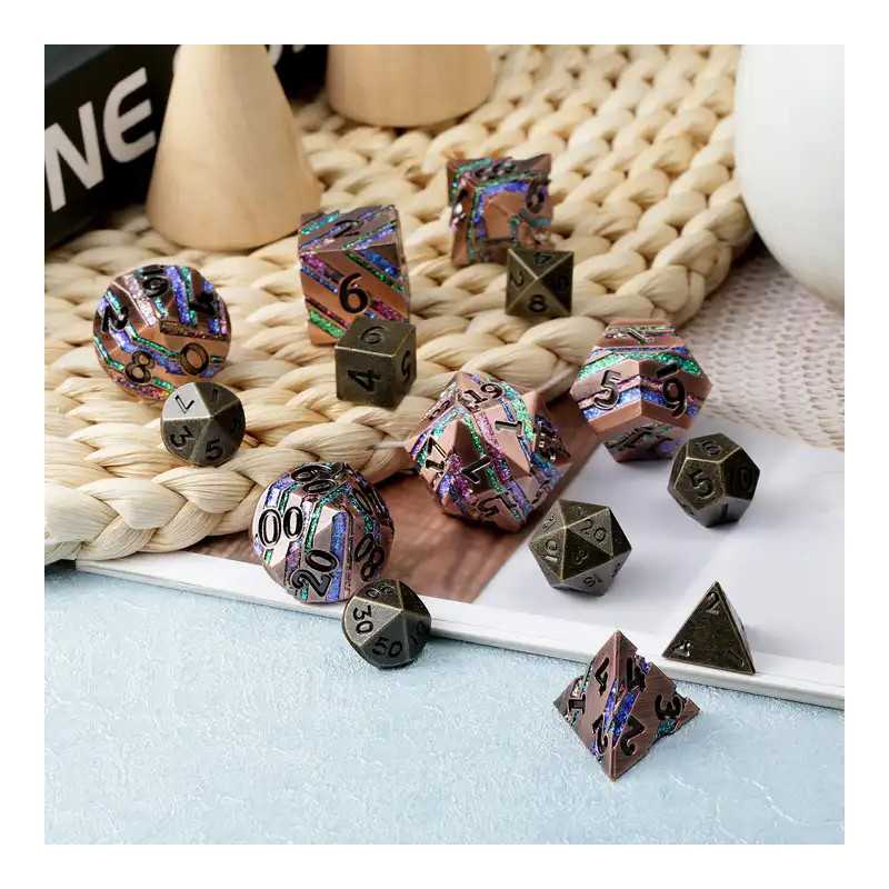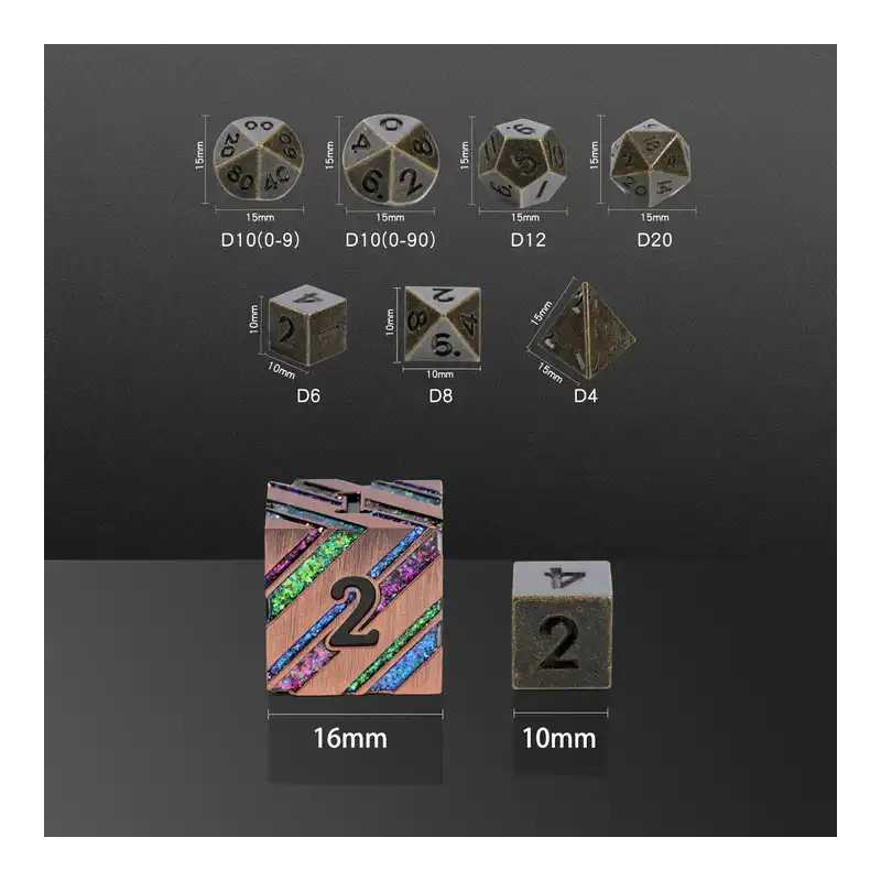 Zestaw siedmiu metalowych kości do gier fabularnych