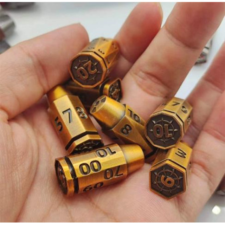 Zestaw siedmiu metalowych kości do gier fabularnych