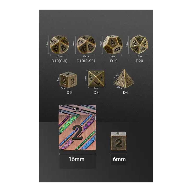 Zestaw siedmiu metalowych kości do gier fabularnych