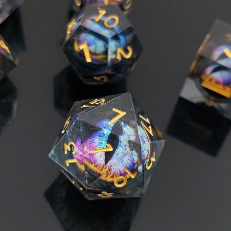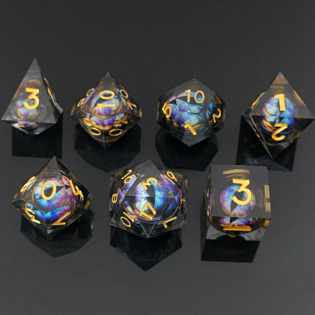 Zestaw 7 epoksydowych kości idealnych na sesję RPG.