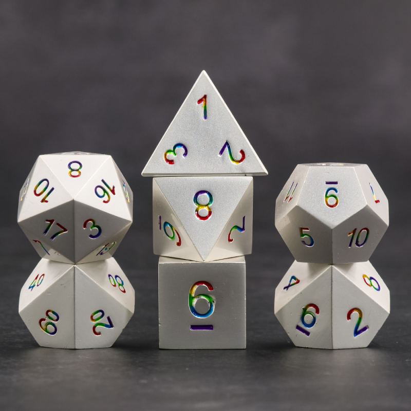 Zestaw siedmiu metalowych kości do gier fabularnych