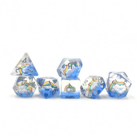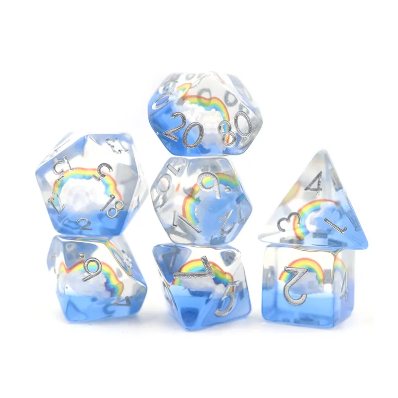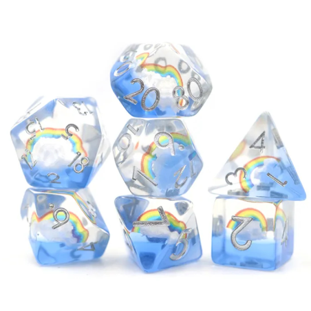 Nic nie wzbogaci sesji RPG tak jak postać krwawego krasnoluda-barbarzyńcy, który wyrżnął połowę klanu, dołączył do Waszej drużyny, a jego furia wraz z żądzą mordu przejawia się za pomocą rzutów tym słodziutkim zestawem! Czar i wdzięk aż biją z zakrwawionego topora, gdy ciosy spadają od przezroczystej kości z zatopioną tęczą! Czyż to nie urocze? I cii - nie mówmy nic o kucykach Pony w słoikach. Wiemy, że jesteśmy tylko sklepem z kostkami, ale chcemy Ci, Droga Osobo, pomóc wyrazić siebie. Życzymy Ci udanych sesji w gronie dobrych ludzi, którzy akceptują Cię taką, jaką jesteś <3