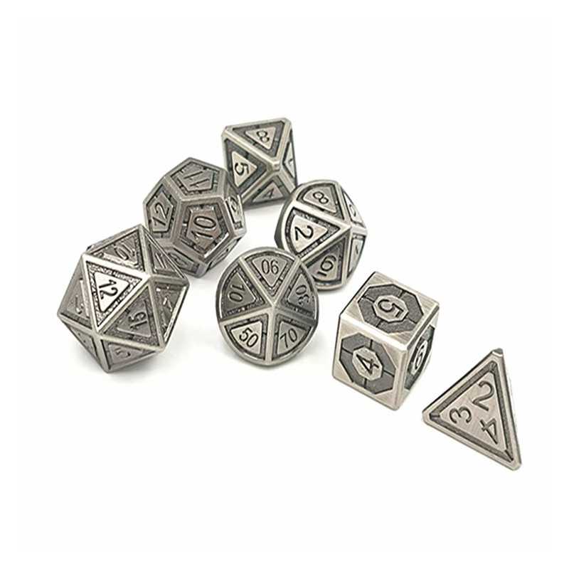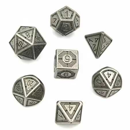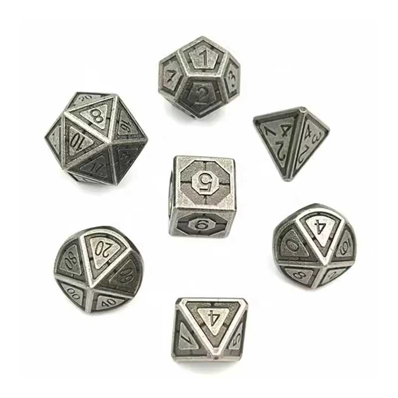 Zestaw siedmiu metalowych kości do gier fabularnych