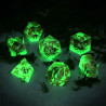 Po naświetleniu kostki świecą w ciemności.
