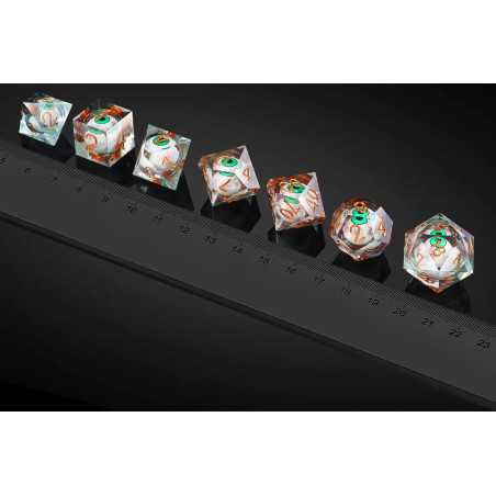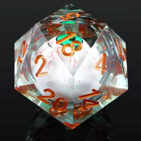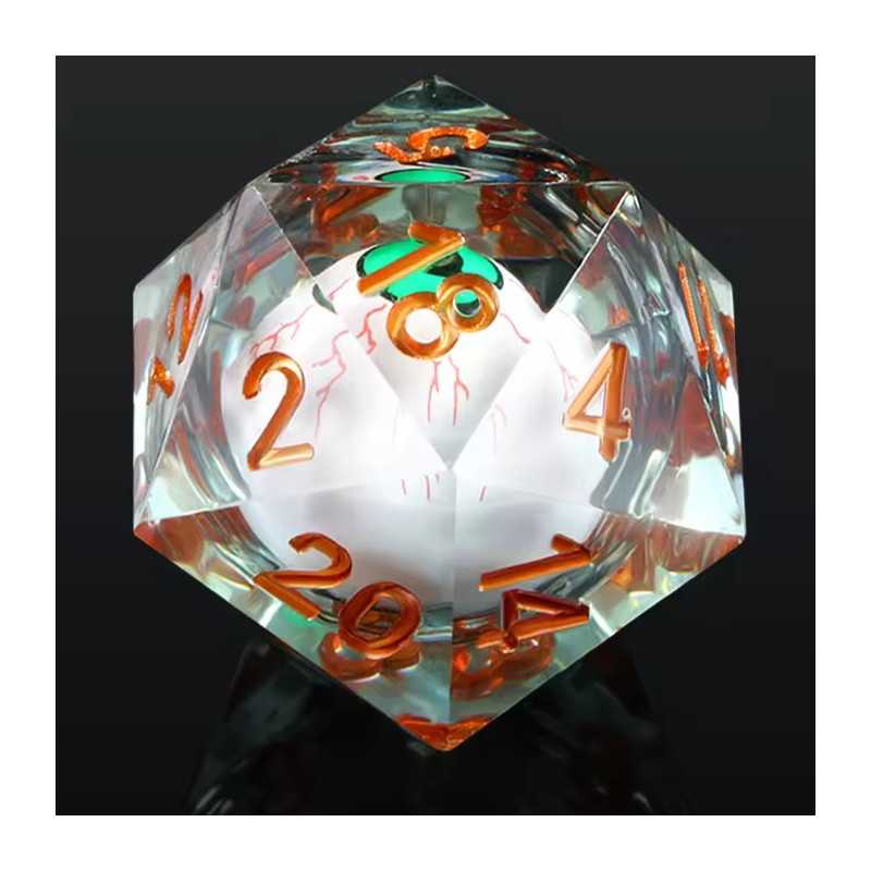 Kostka ma płynne wnętrze i ruchome oko, które patrzy na każdy Twój ruch. Oko po rzucie trzęsie się, a na koniec spogląda prosto w górę.