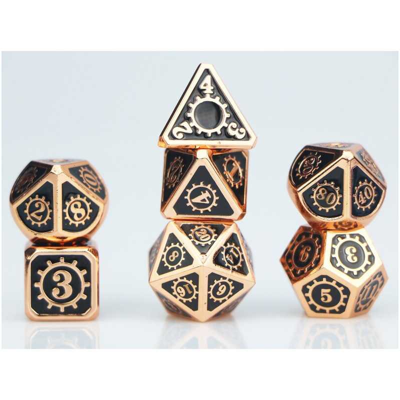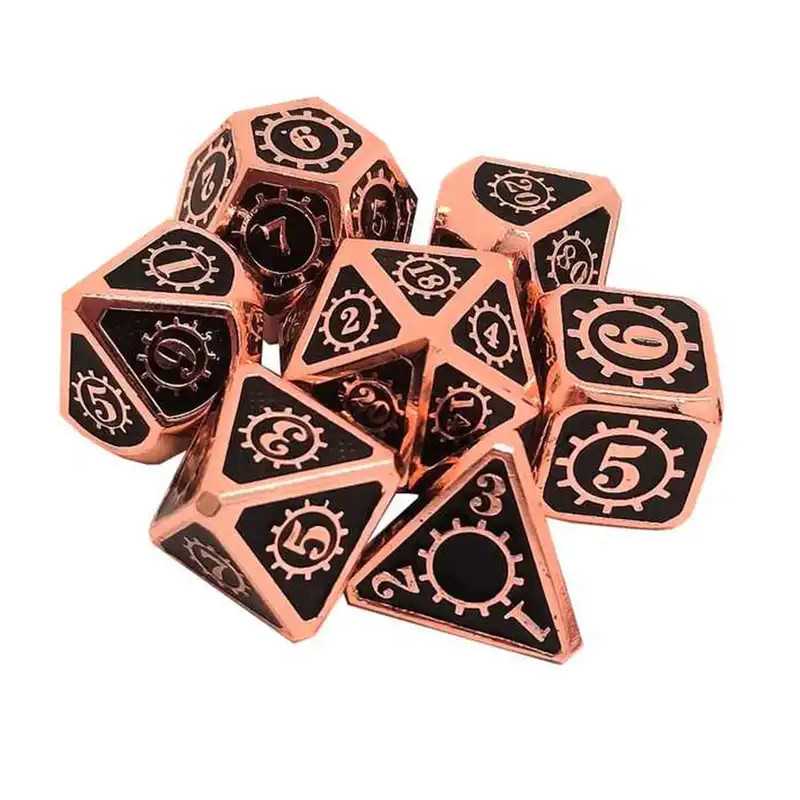 Zestaw siedmiu metalowych kości do gier fabularnych