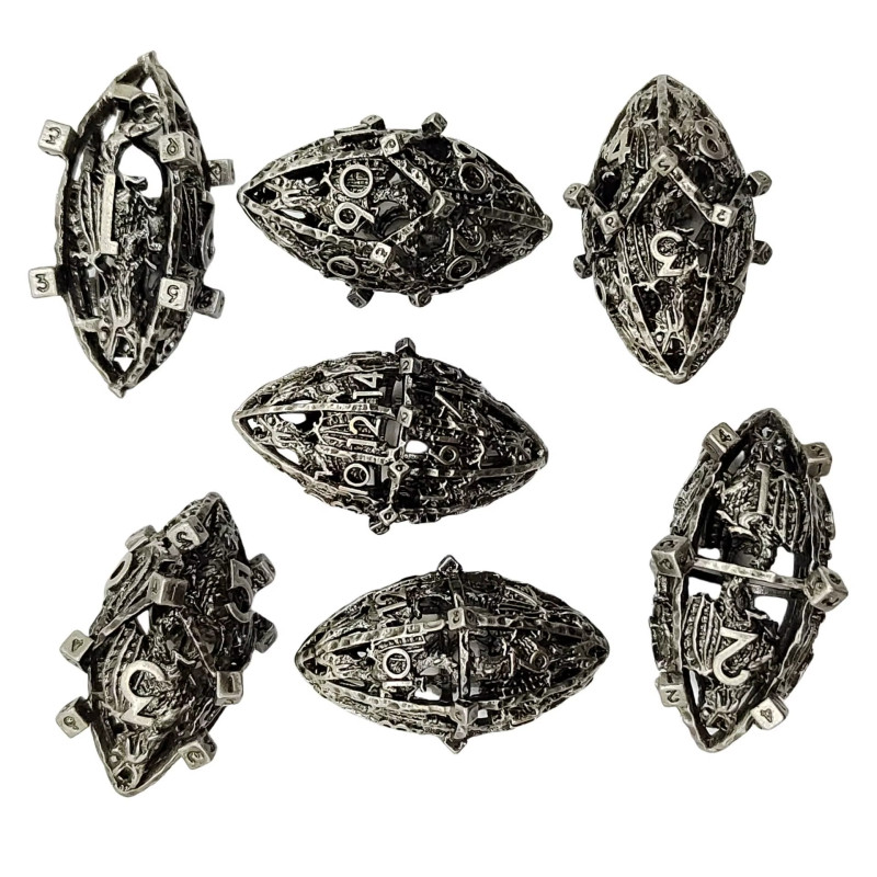 Zestaw siedmiu metalowych kości do gier fabularnych