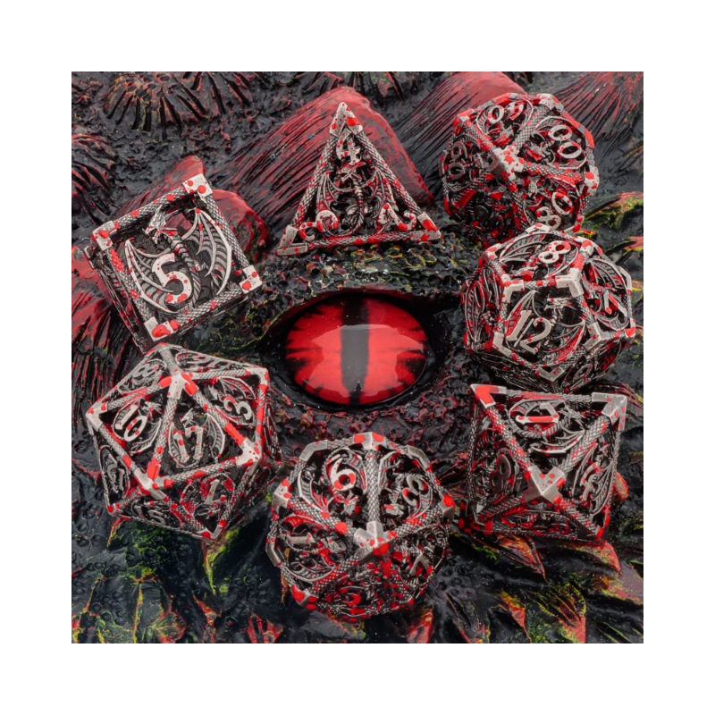 W czasach zawieruchy, gdy magia dzieliła świat na słabych ludzi i prastare smoki, doszło do niespotykanego sojuszu. Człowiek, znany jako Arel z Popielisk, stanął twarzą w twarz z hordą magów. Mógł zginąć, ale magowie nie przewidzieli jednego - mężczyzna zyskał niedawno potężnego przyjaciela. Gdy jeden z czarowników utkał potężnie zaklęcie, pojawił się smok Eldrain i osłonił przyjaciela własną piersią. Magowie uderzali zaklęciami, a smocze łuski krwawiły, gdy błony skrzydeł utworzyły kopułę nad głową Arela. Każda rana, każdy spływający strumień krwi prastarego gada, przypominał o sile przyjaźni, która nie zna granic gatunków. Niestety, smok zmarł, ale wytrwał do czasu odsieczy kompanów z bandy Arela, która rozprawiła się z magami. Esencja smoczej duszy objawiła się w dłoniach Arela pod postacią turlaczy. Mamy je teraz u siebie. Z zestawu tych siedmiu metalowych kości, mieniących się niczym krople starej krwi Eldraina, bije echo tamtego poświęcenia. W Twoich dłoniach spoczywa symbol niezłomnej więzi.