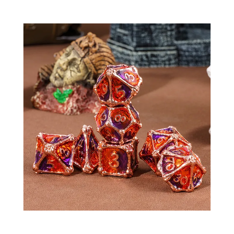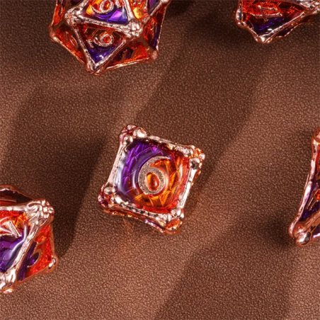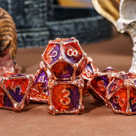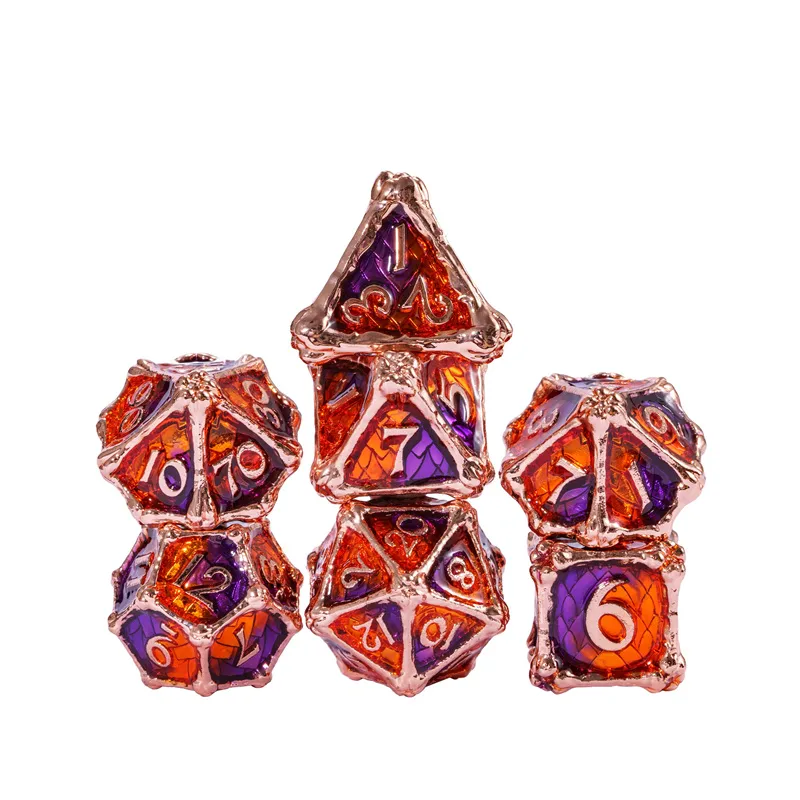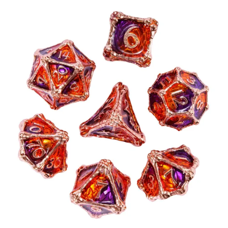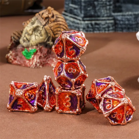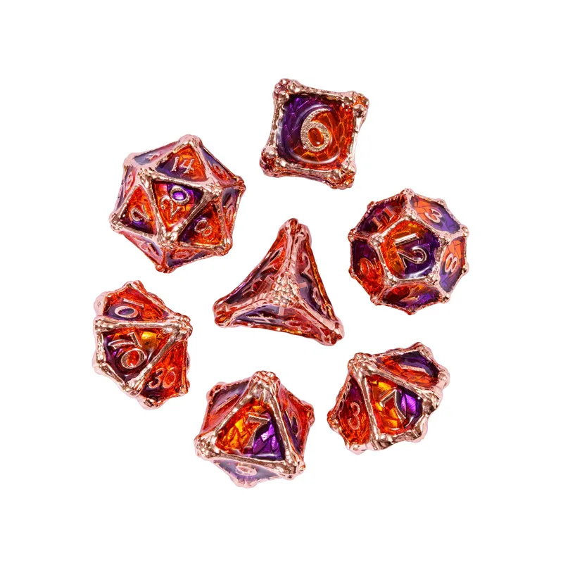 Zestaw siedmiu metalowych kości do gier fabularnych