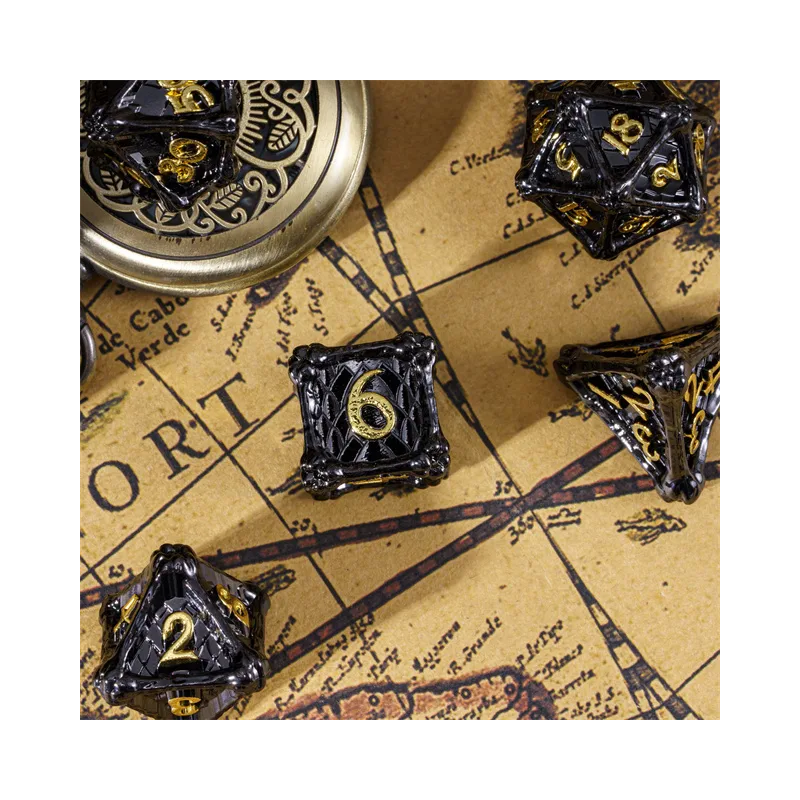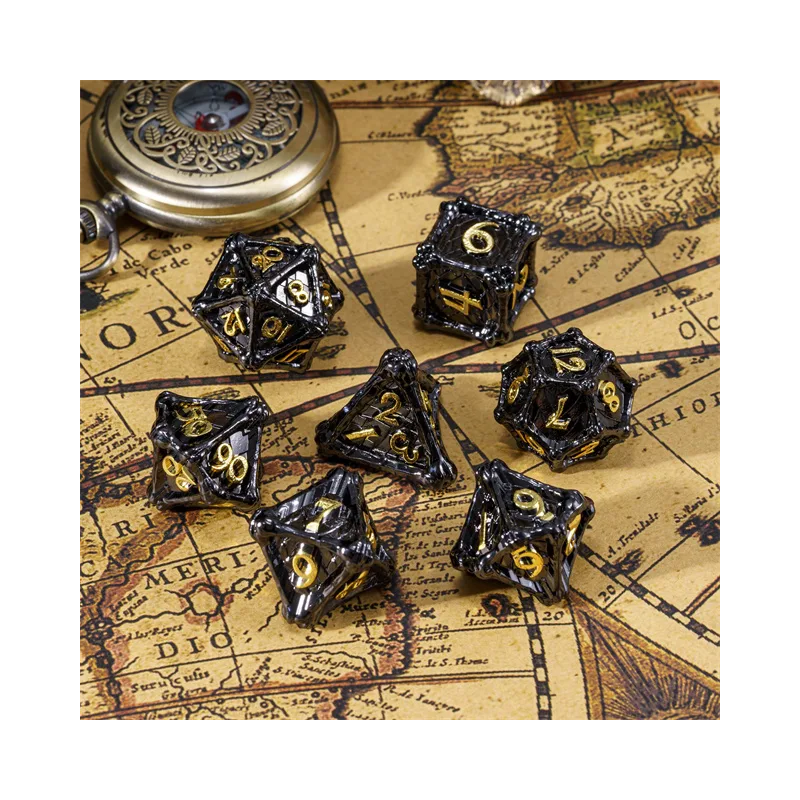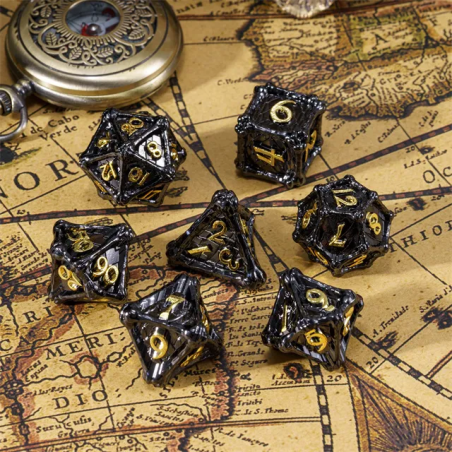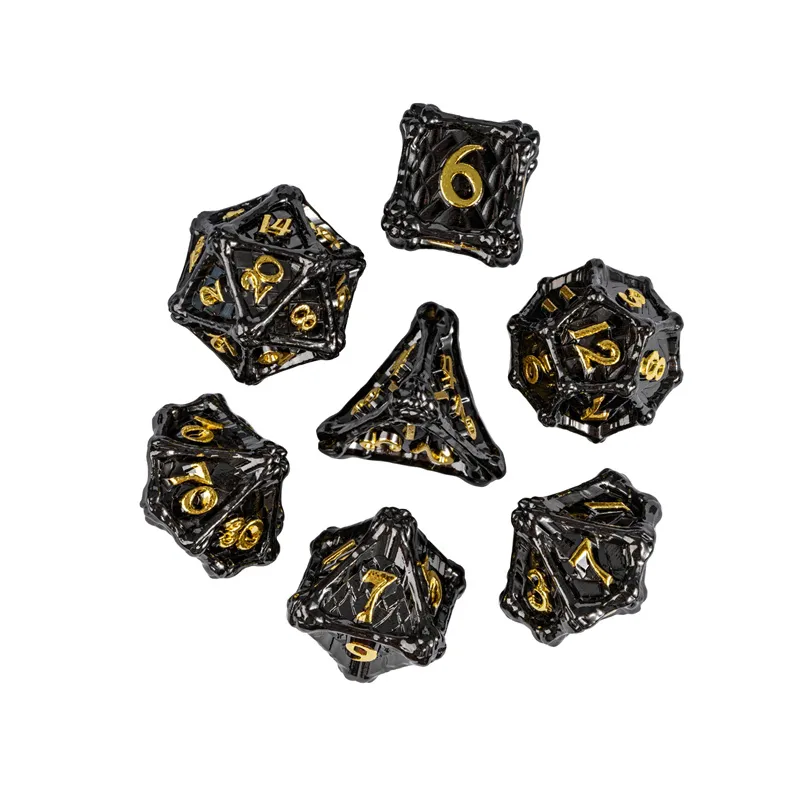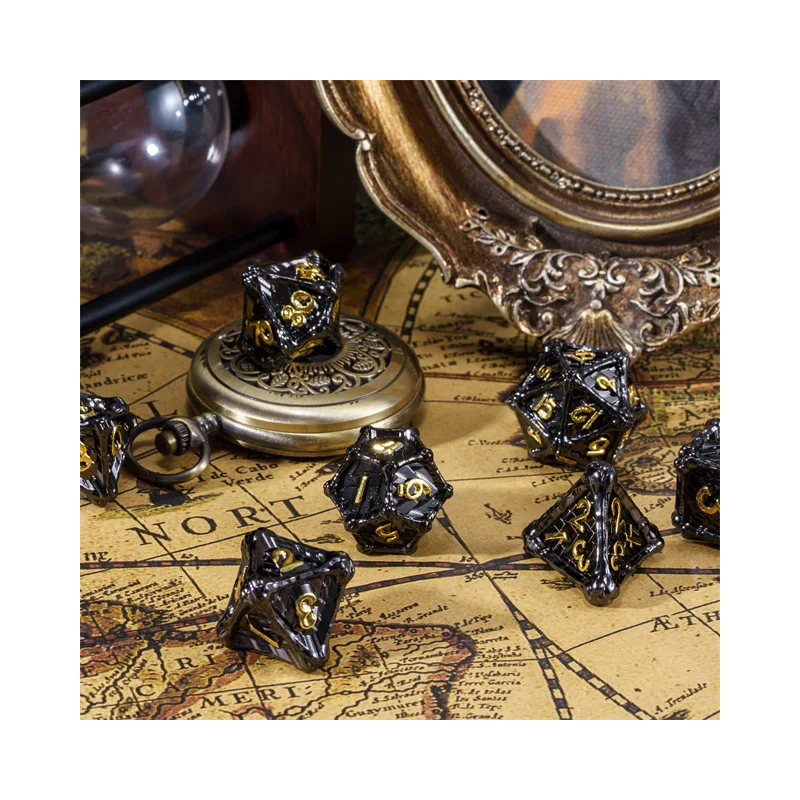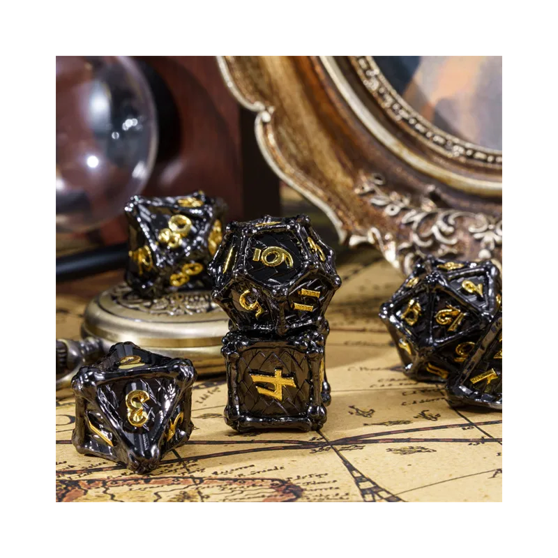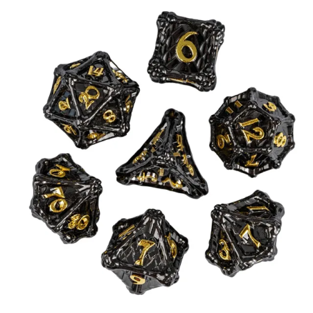 Zestaw siedmiu metalowych kości do gier fabularnych