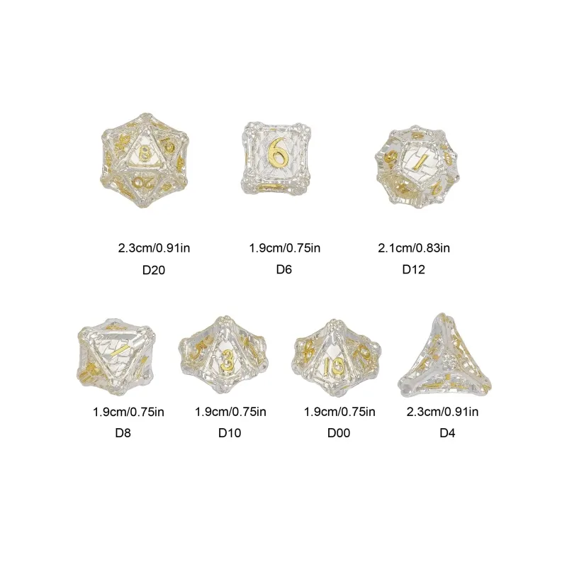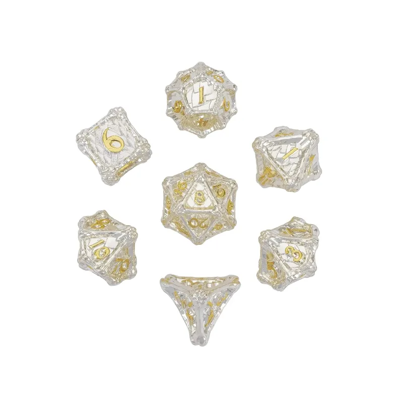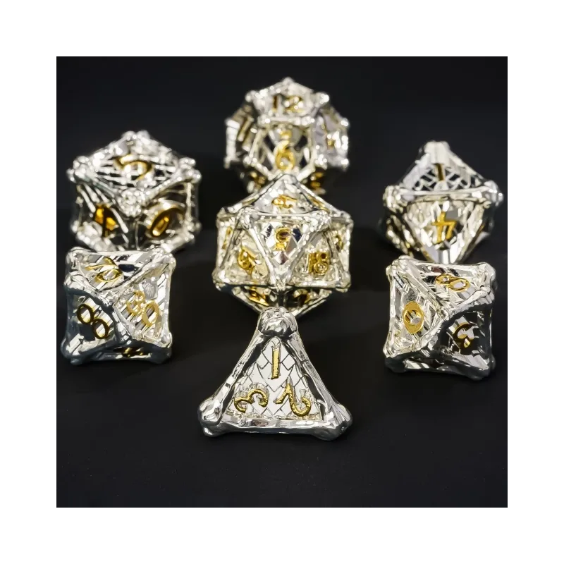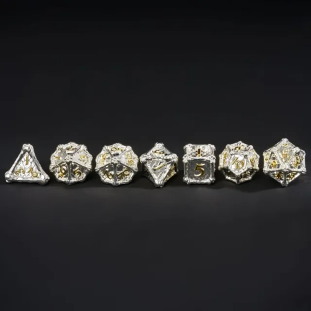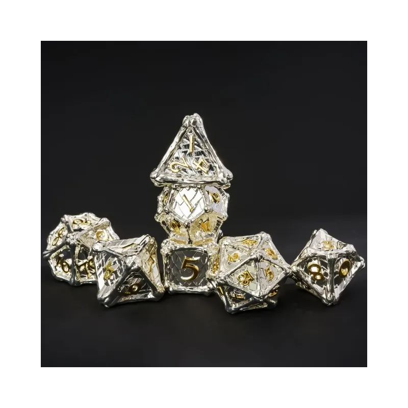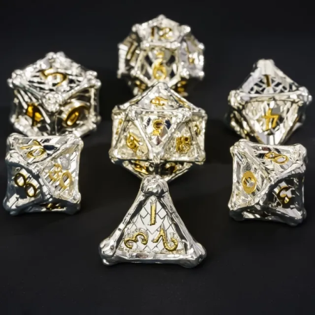 Zestaw siedmiu metalowych kości do gier fabularnych