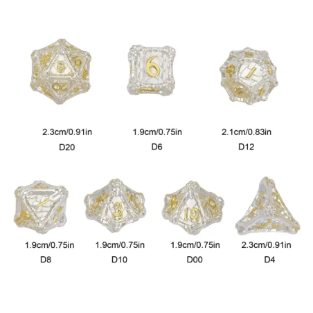 W ofercie sklepu RGFK znajdziesz oryginalne, metalowe kości do RPG nawiązujące do krasnoludów, elfów, wampirów, wilkołaków, czy jednorożców. Jeżeli chcesz podgrzać atmosferę, wybierz kości w stylu steampunk, antyku lub średniowiecza i przenieś się z nimi prosto do świata gry!