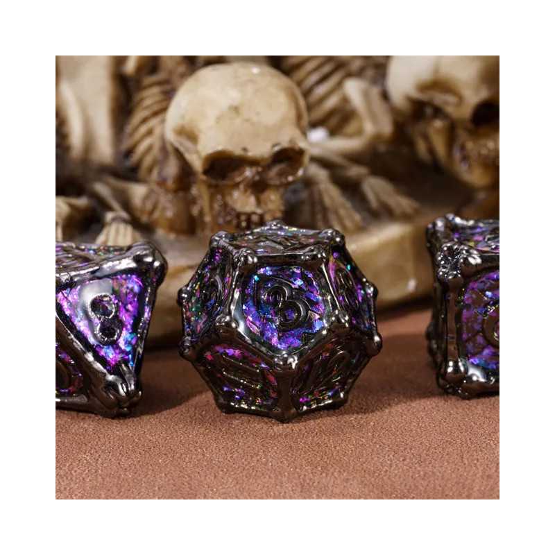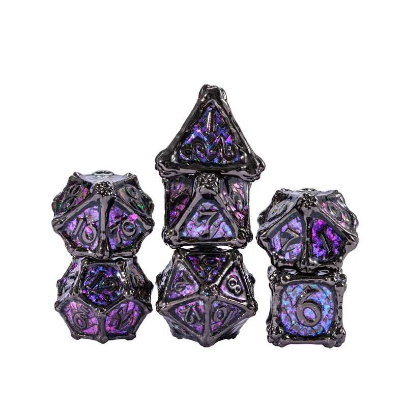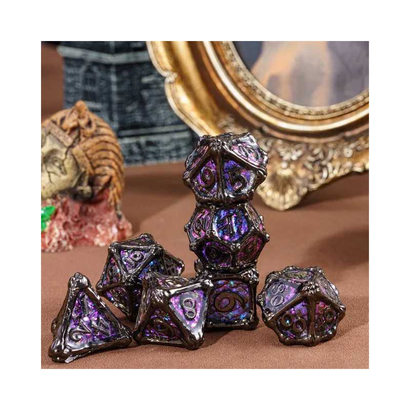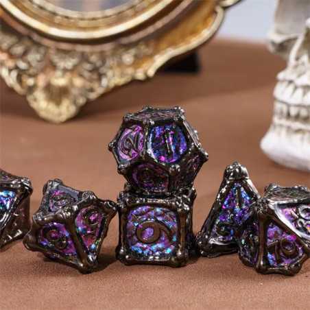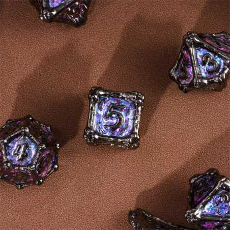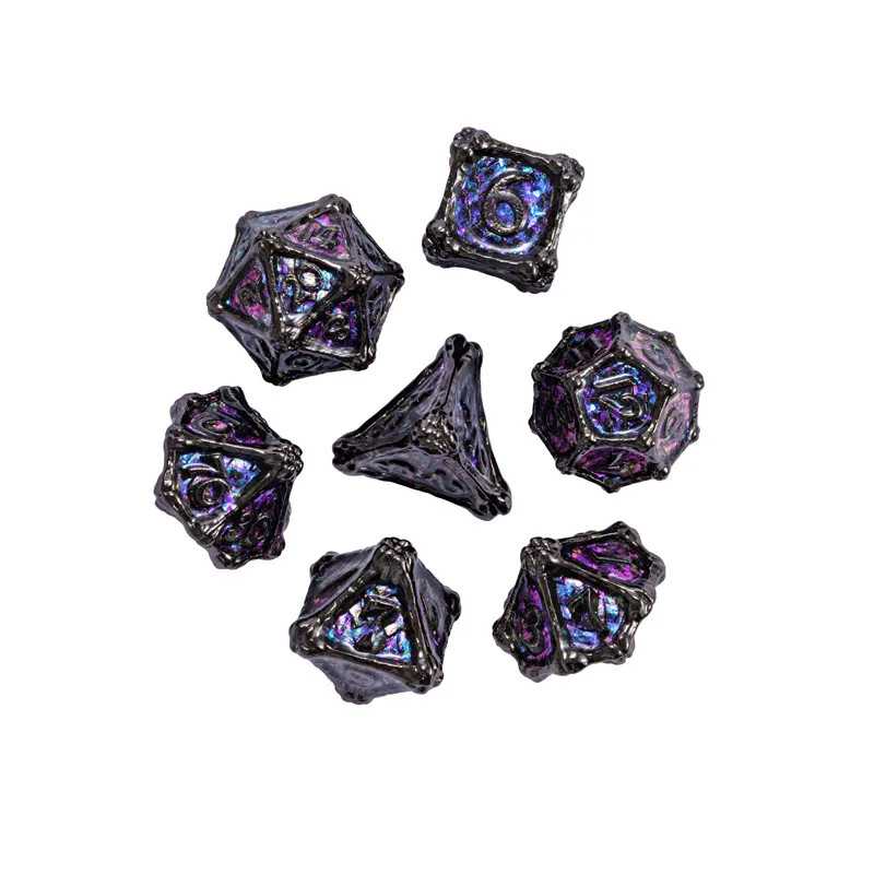 Zestaw siedmiu metalowych kości do gier fabularnych