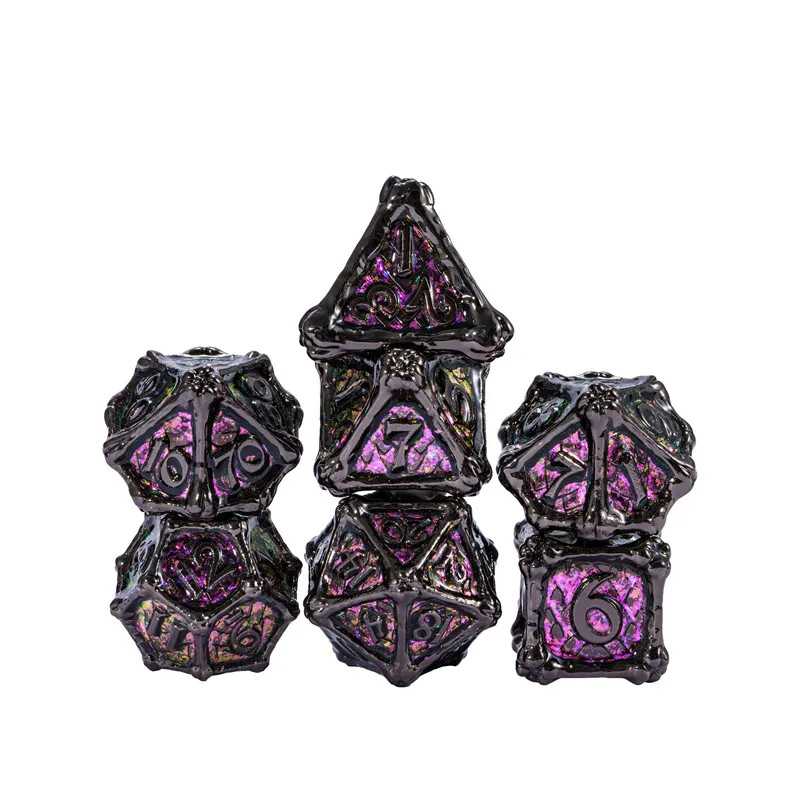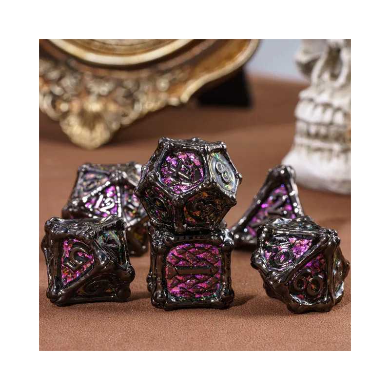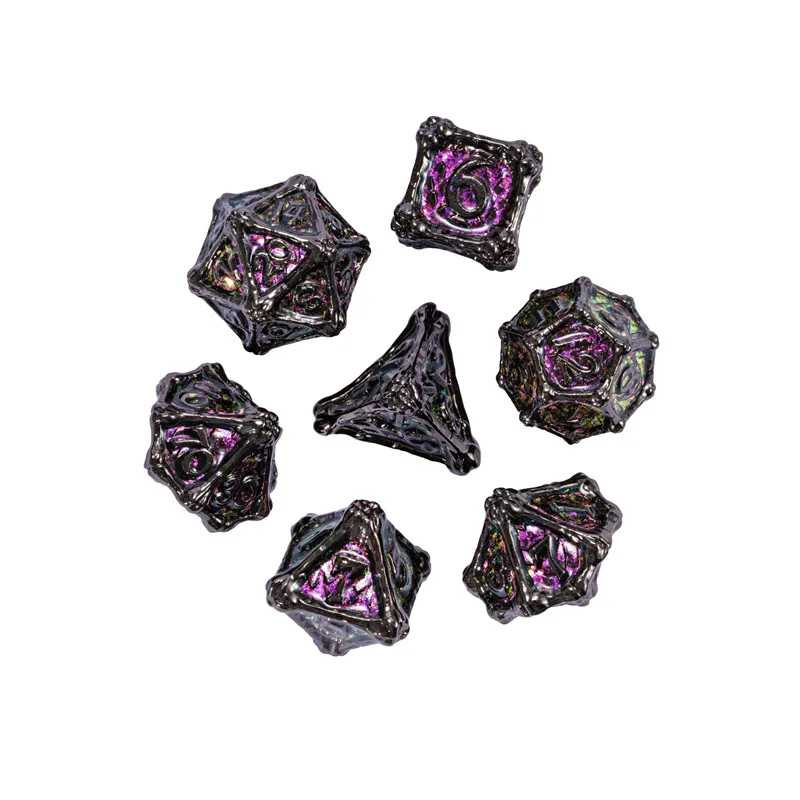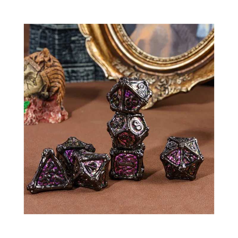 Zestaw siedmiu metalowych kości do gier fabularnych