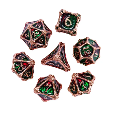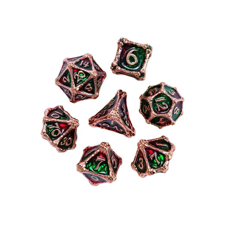 Zestaw siedmiu metalowych kości do gier fabularnych