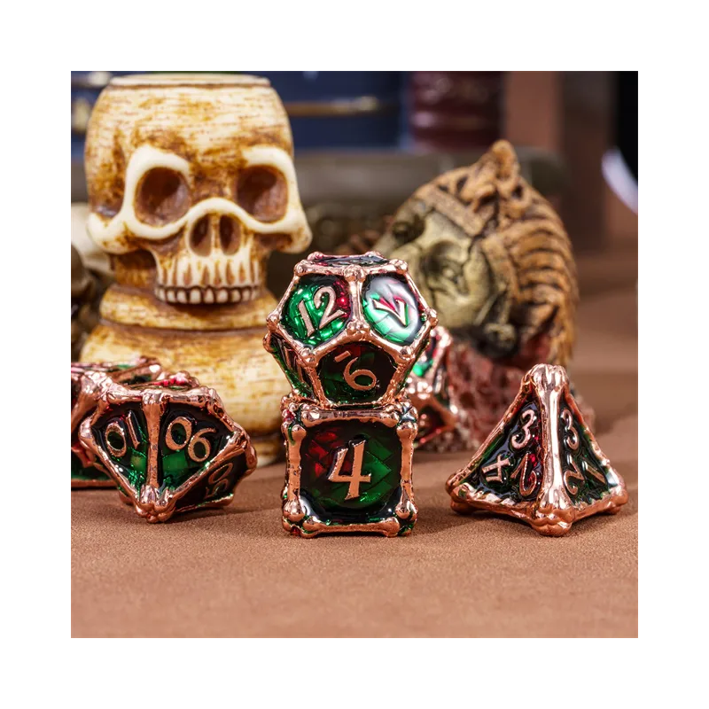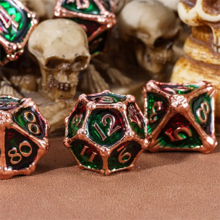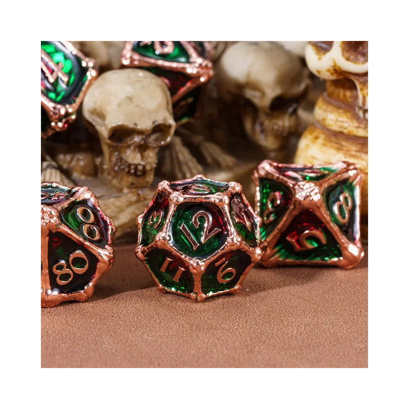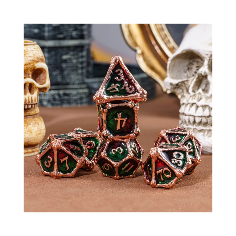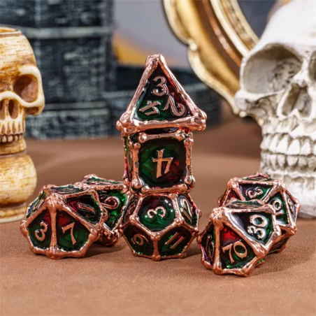 W ofercie sklepu RGFK znajdziesz oryginalne, metalowe kości do RPG nawiązujące do krasnoludów, elfów, wampirów, wilkołaków, czy jednorożców. Jeżeli chcesz podgrzać atmosferę, wybierz kości w stylu steampunk, antyku lub średniowiecza i przenieś się z nimi prosto do świata gry!