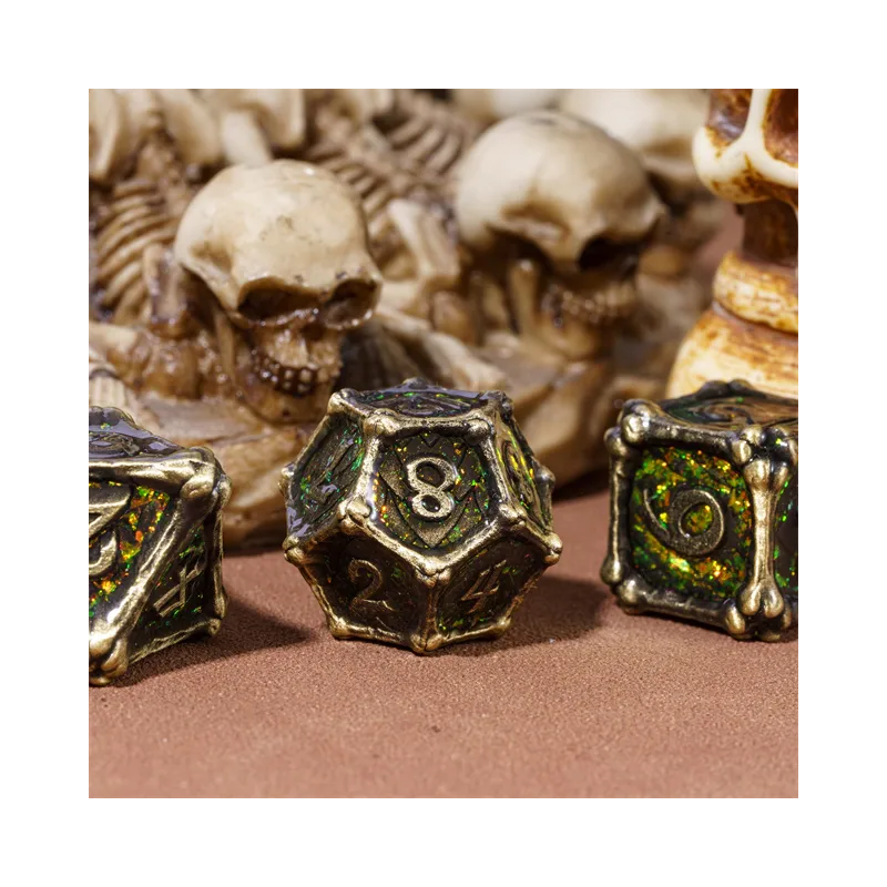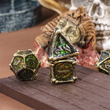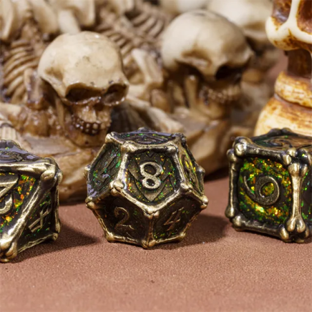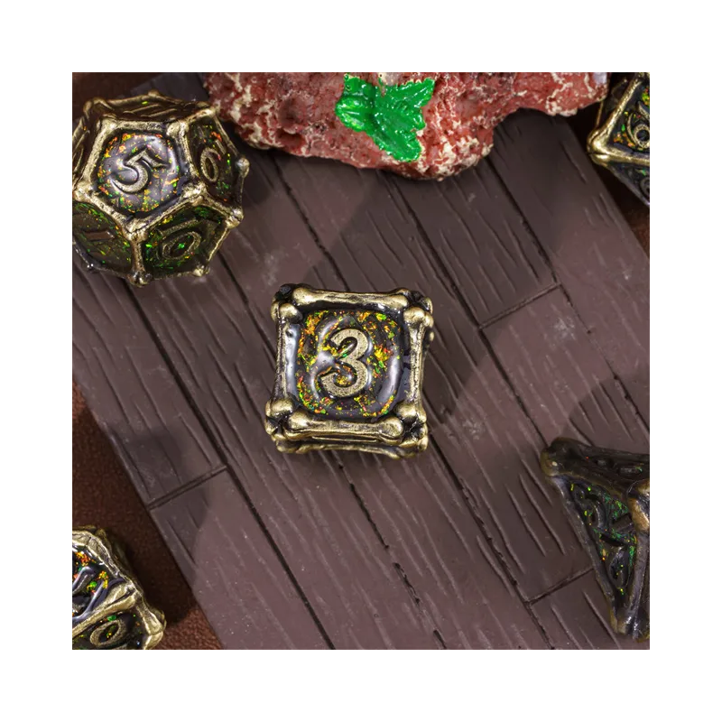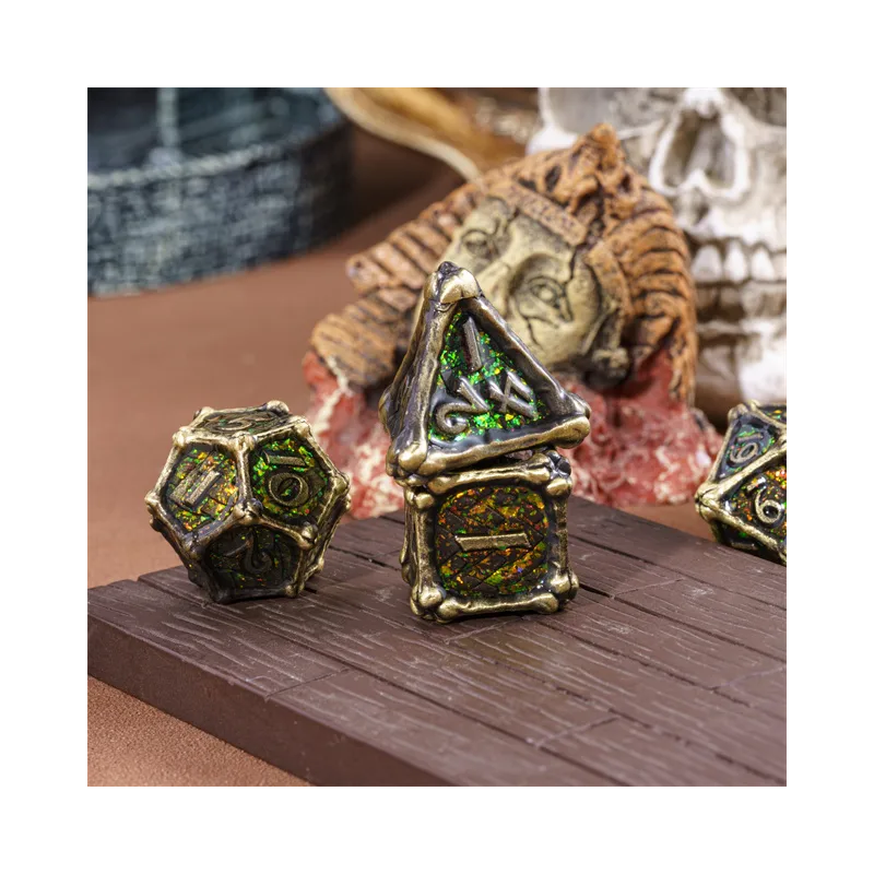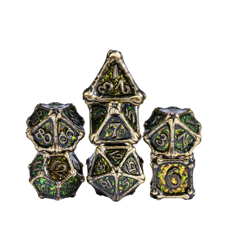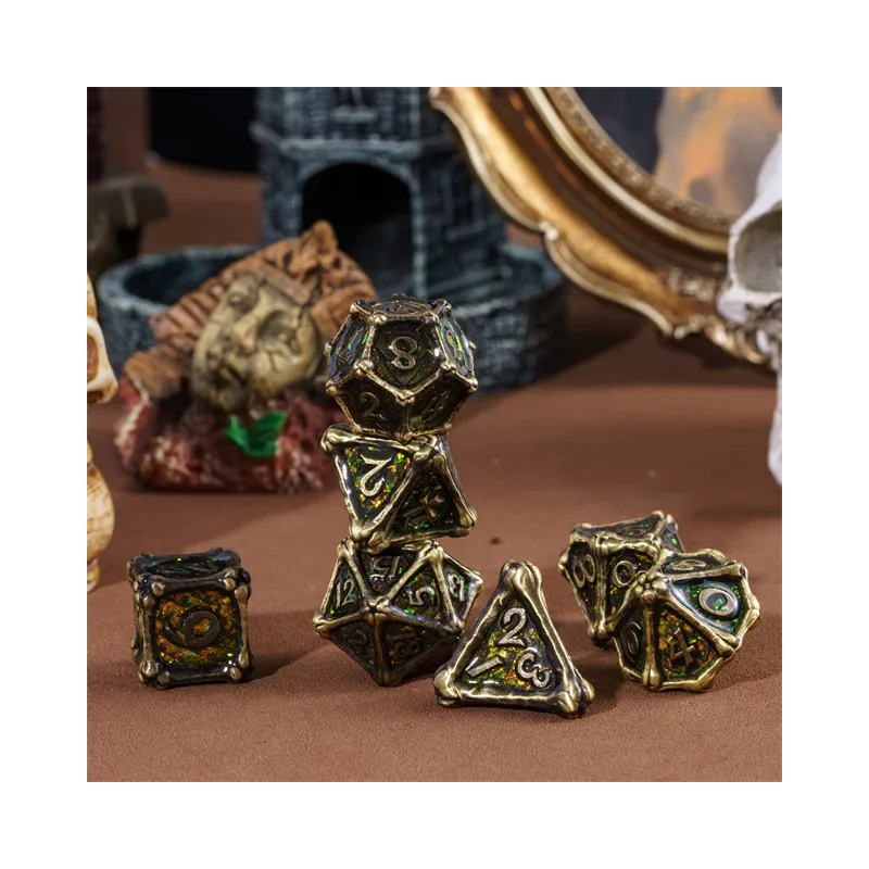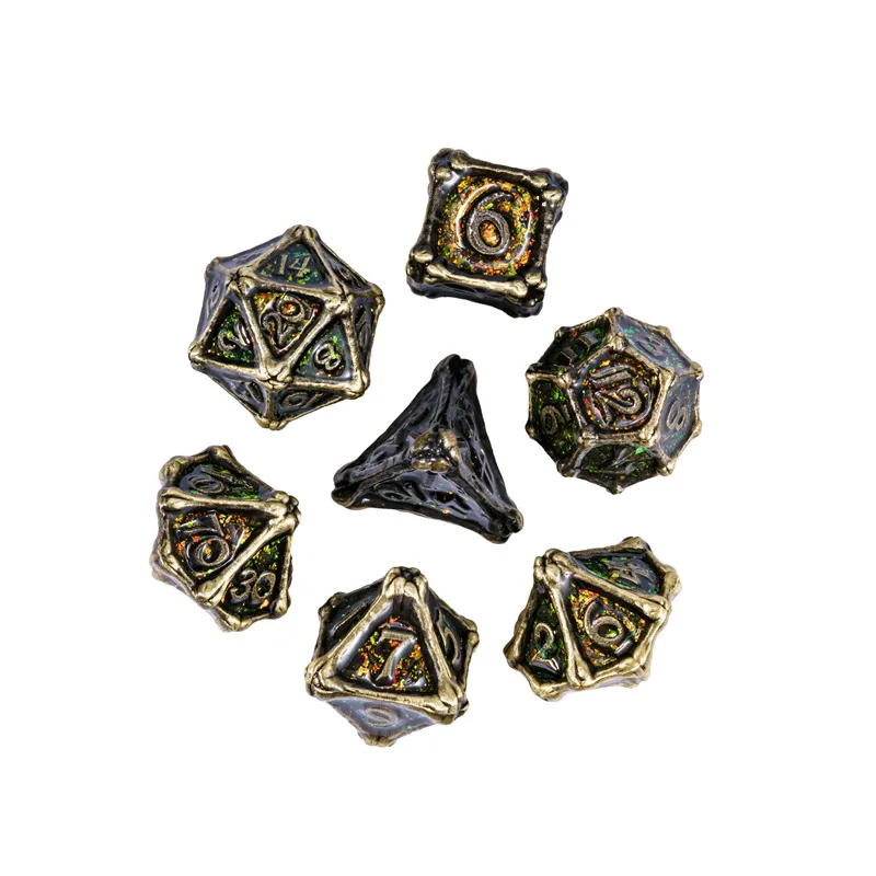 Zestaw siedmiu metalowych kości do gier fabularnych