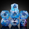 Kostki mają płynne wnętrze - po rzucie widać w nich pływający brokat.