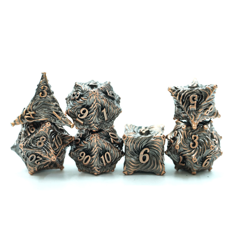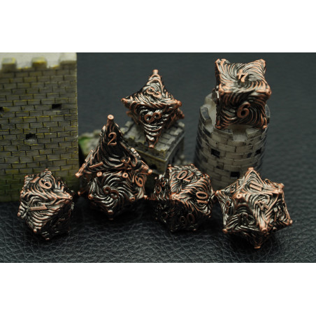 W ofercie sklepu RGFK znajdziesz oryginalne, metalowe kości do RPG nawiązujące do krasnoludów, elfów, wampirów, wilkołaków, czy jednorożców. Jeżeli chcesz podgrzać atmosferę, wybierz kości w stylu steampunk, antyku lub średniowiecza i przenieś się z nimi prosto do świata gry!
