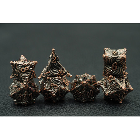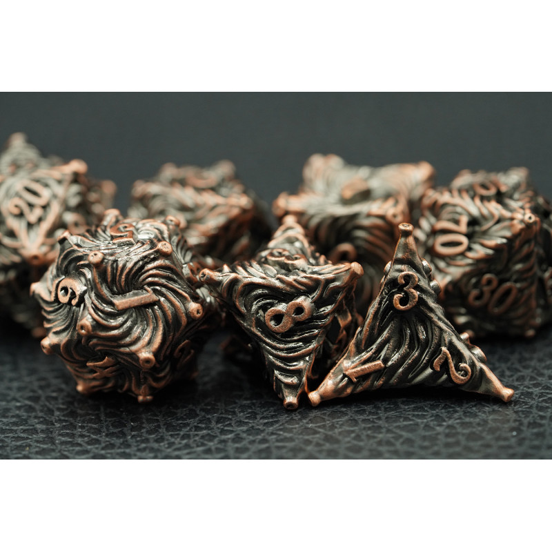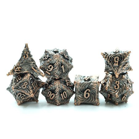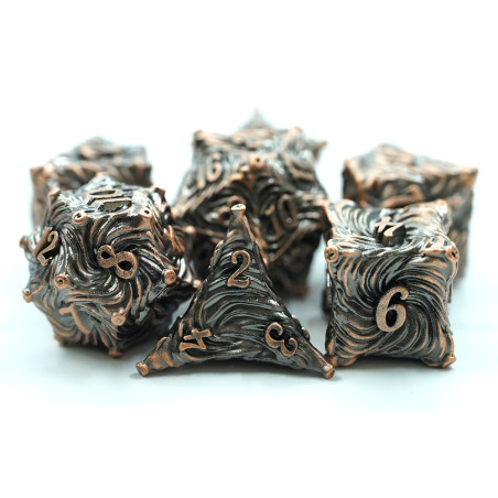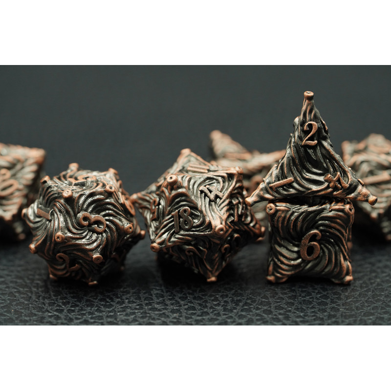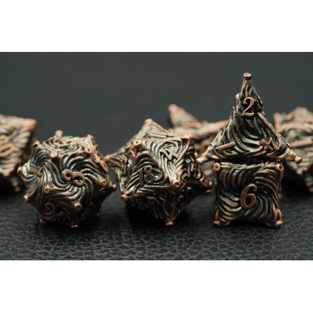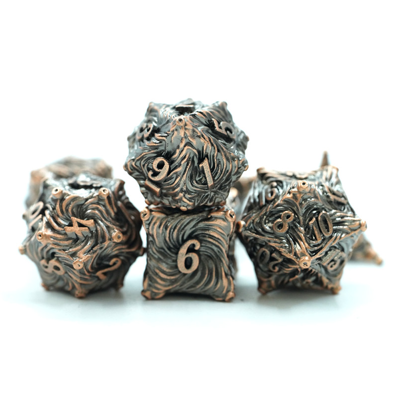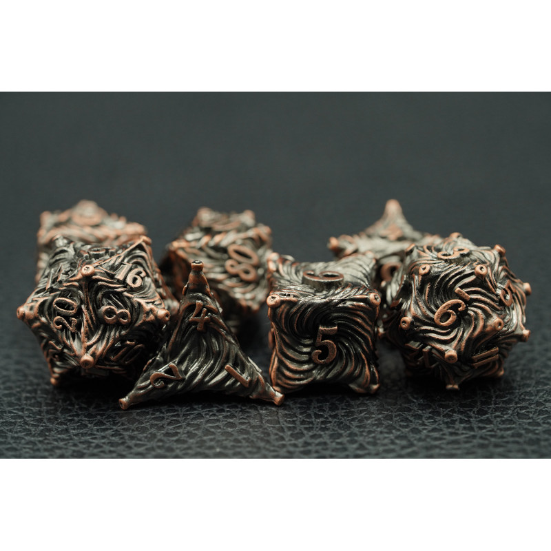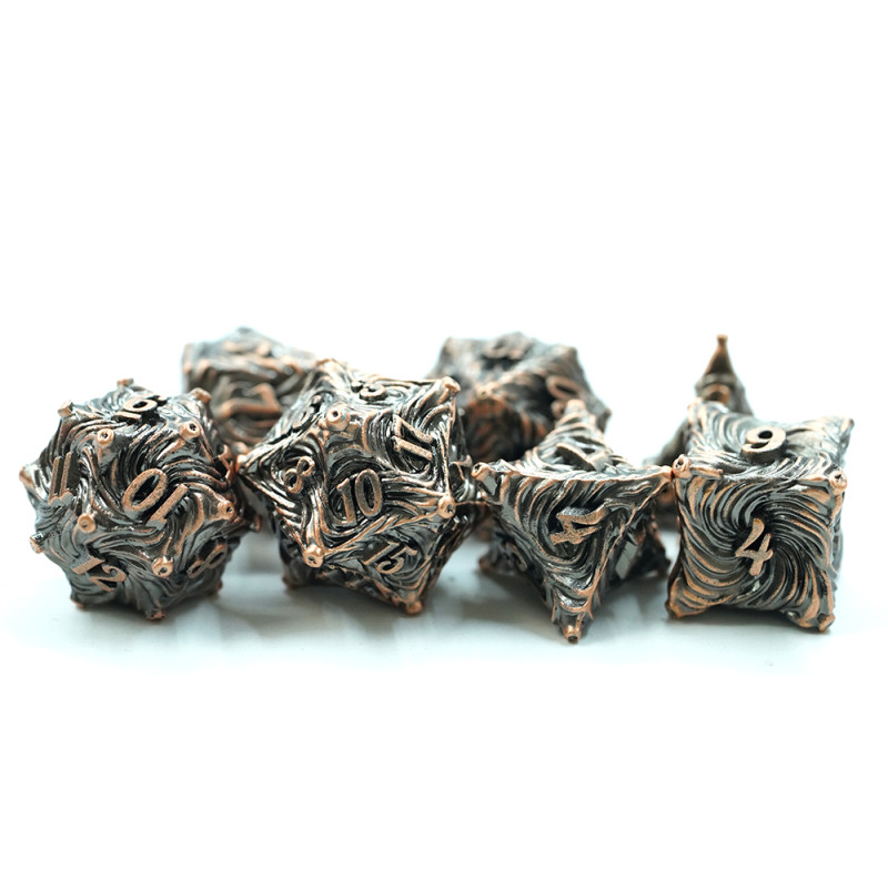 Zestaw siedmiu metalowych kości do gier fabularnych