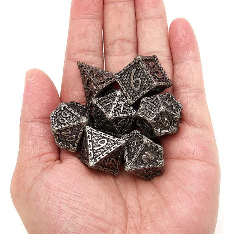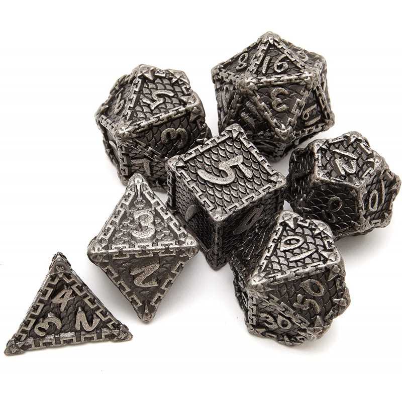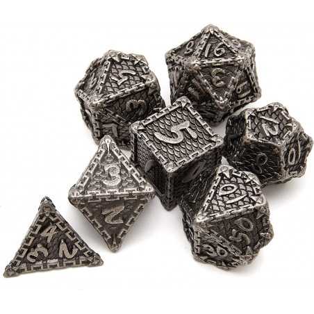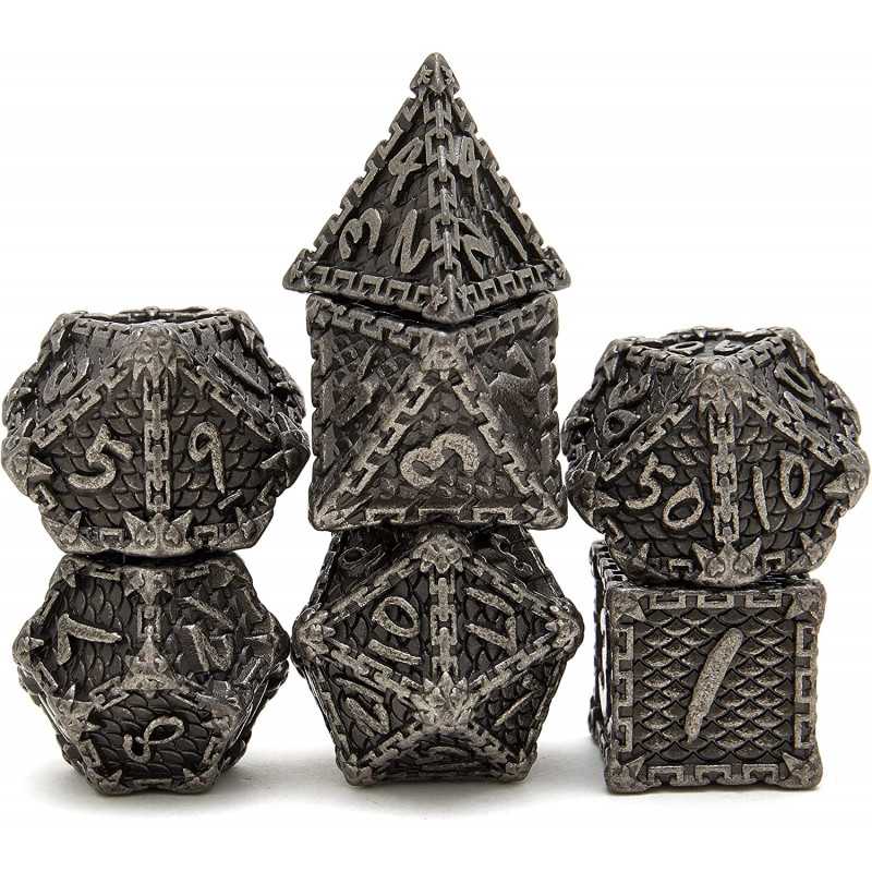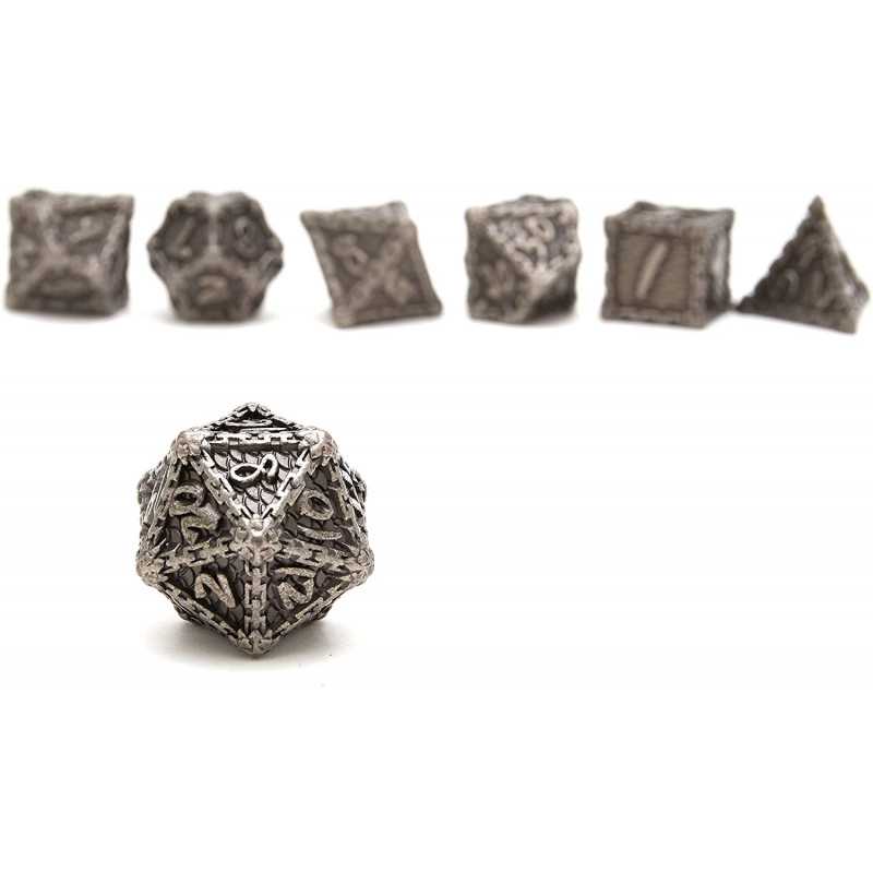 Zestaw siedmiu metalowych kości do gier fabularnych