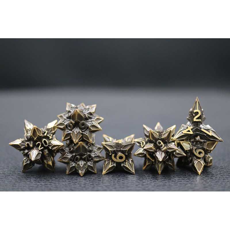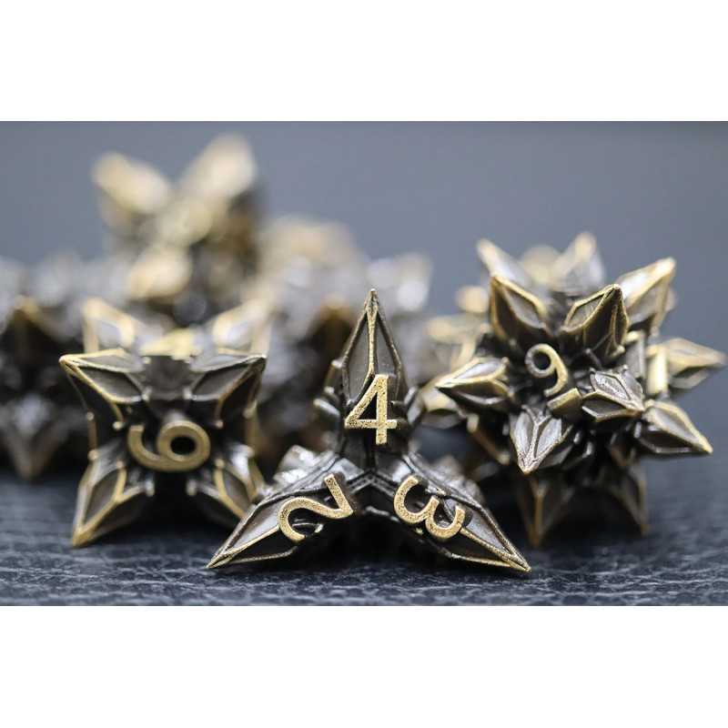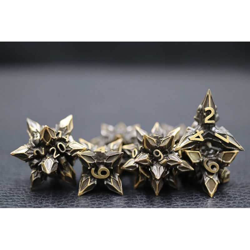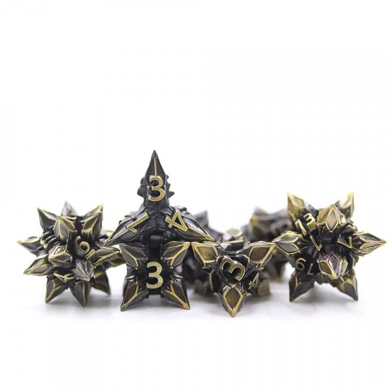 Zestaw siedmiu metalowych kości do gier fabularnych