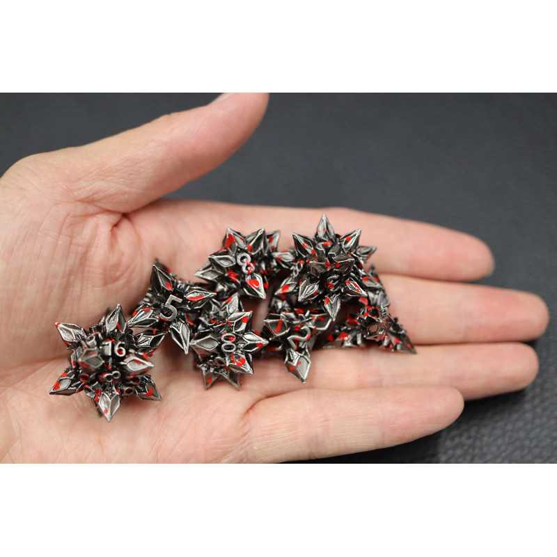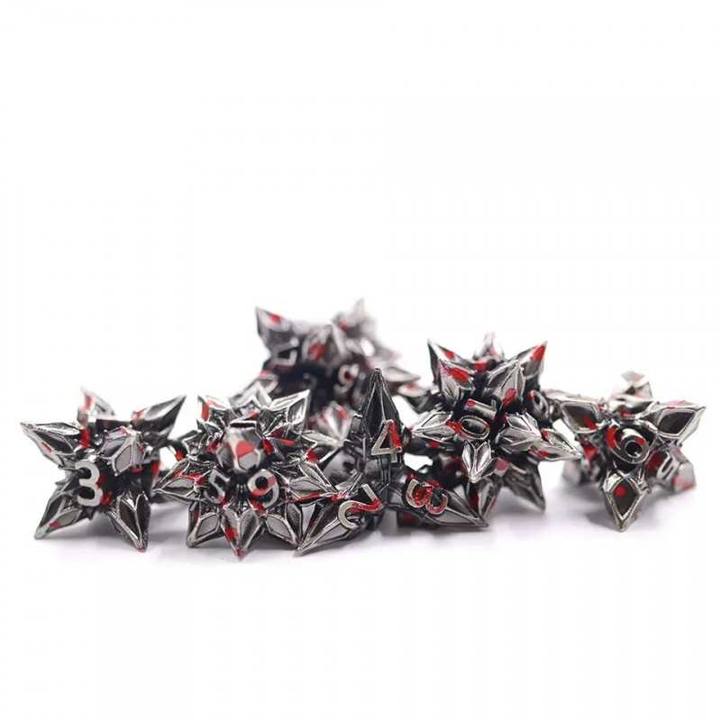 Zestaw siedmiu metalowych kości do gier fabularnych