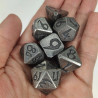 Komplet kości, czyli siedem wysokiej jakości kostek. Dzięki odpowiedniemu wyważeniu są bardzo wygodne w użyciu.