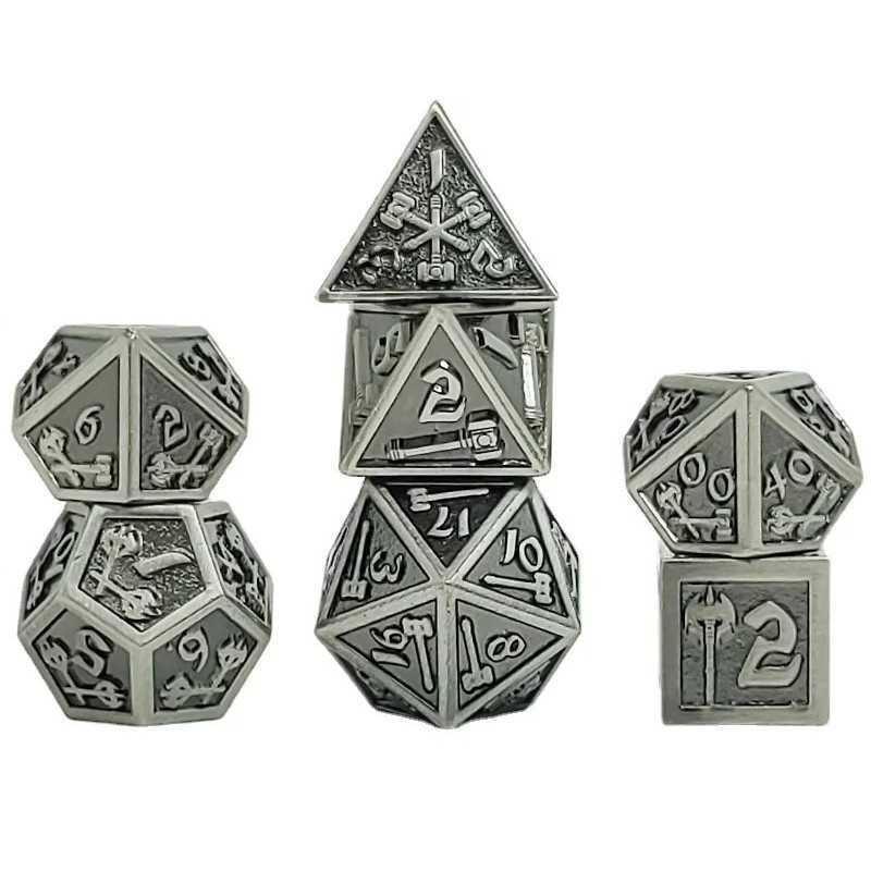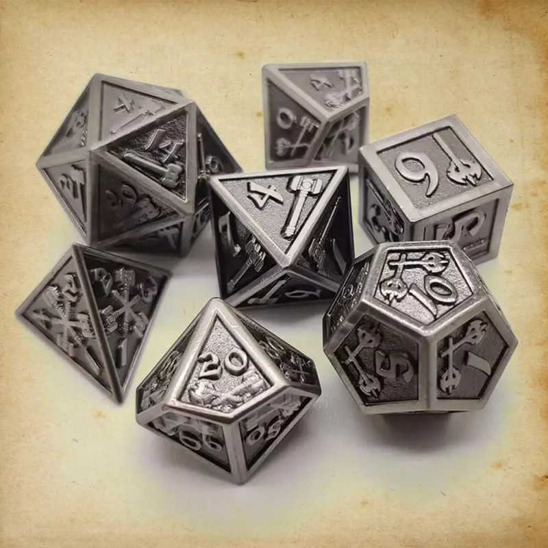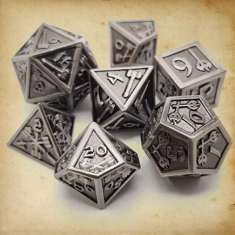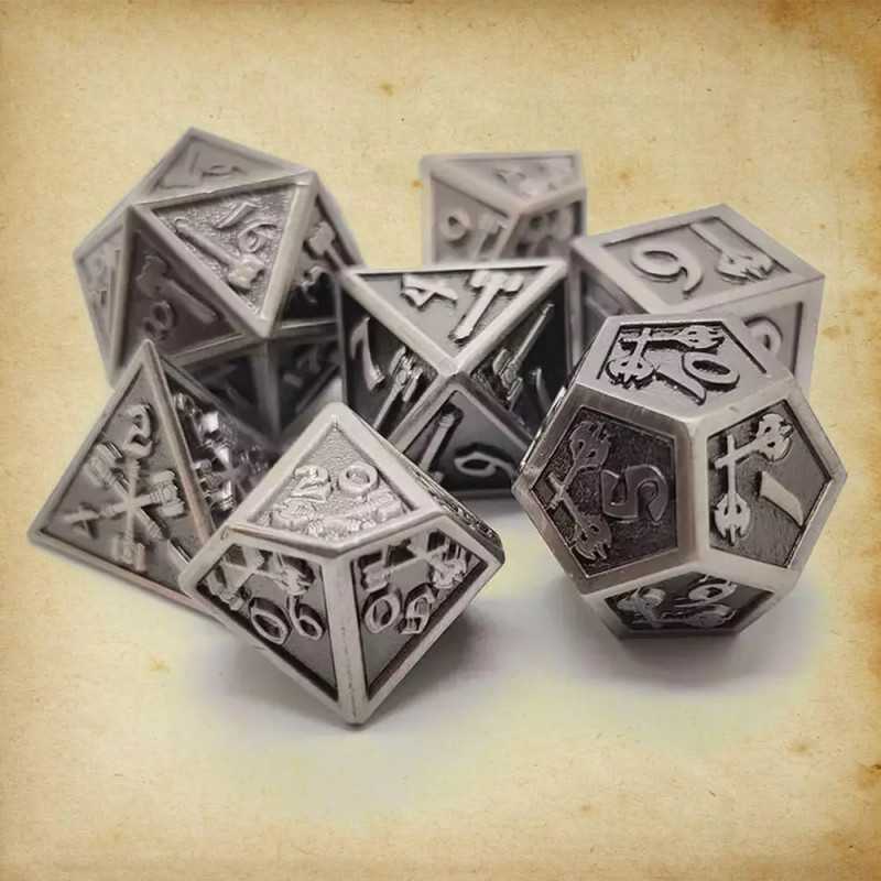 Zestaw siedmiu metalowych kości do gier fabularnych