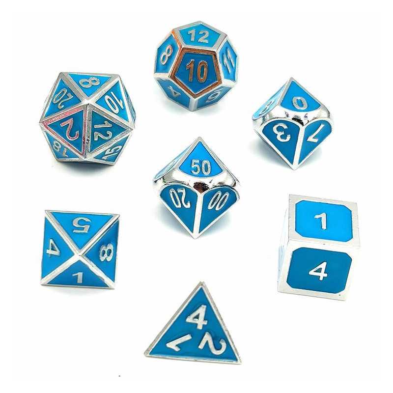 Zestaw siedmiu metalowych kości do gier fabularnych