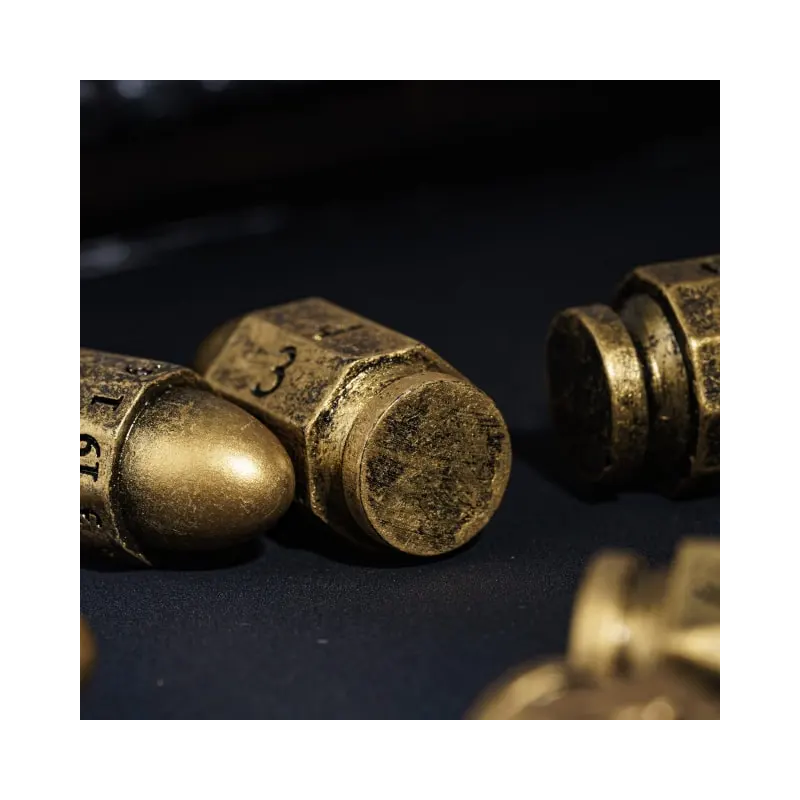 Zestawy metalowych kości do gry wyróżnia ponadprzeciętna odporność na uszkodzenia. Choć sprawiają wrażenie cięższych, są dobrze wyważone i wygodne w użyciu. To produkt wysokiej jakości, stanowiący prawdziwy niezbędnik zaawansowanego gracza. Z doświadczenia wiemy, że każdy fan tytułów RPG i planszówek w końcu decyduje się na zakup metalowych kostek. Przyczyny są dwie: wygoda i elegancki wygląd, który podkreśla wagę wykonywanych rzutów.