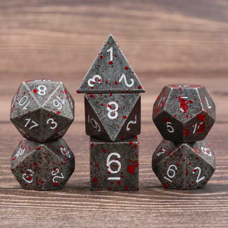 Komplet kości, czyli siedem wysokiej jakości kostek. Dzięki odpowiedniemu wyważeniu są bardzo wygodne w użyciu.