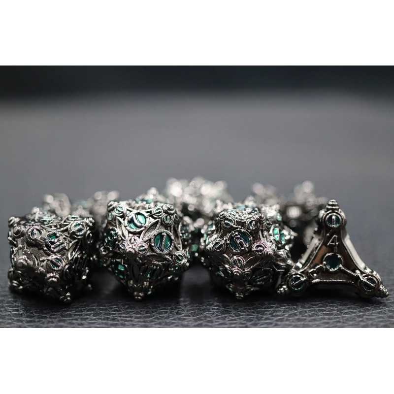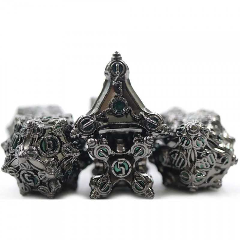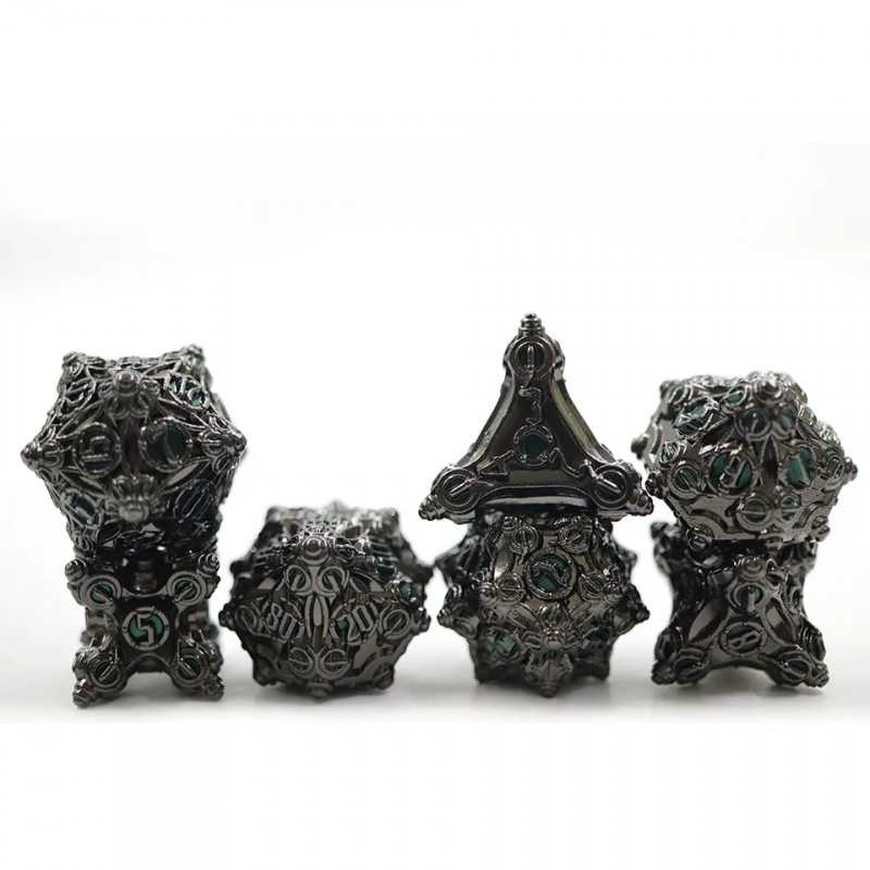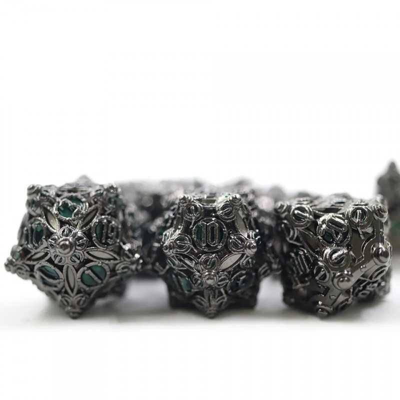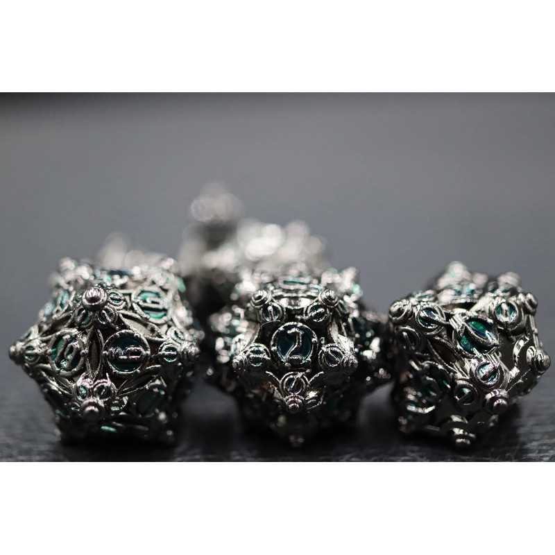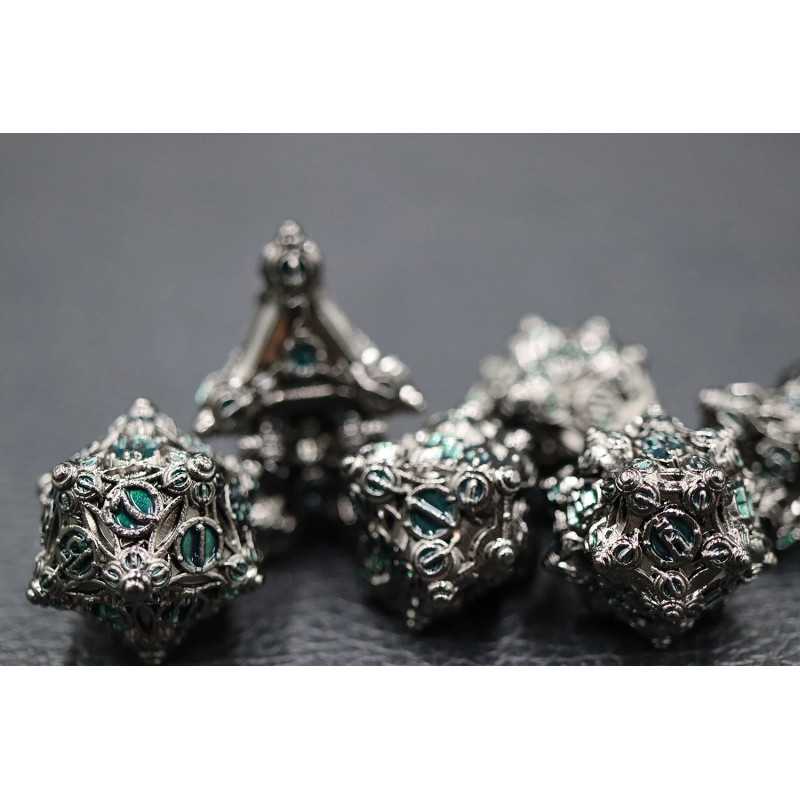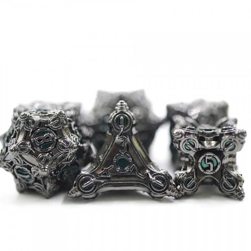 Zestaw siedmiu metalowych kości do gier fabularnych