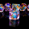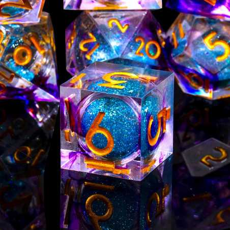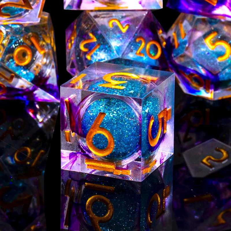 Wyjdę nieco zza zasłony opisu i ujawnię się. Hej, tu Twój kostkowy narrator, który snuje dla Ciebie oraz innych entuzjastów turlania i fantazji te wszystkie mikroopowieści. Chciałbym Ci powiedzieć, że to mój ulubiony zestaw w całej Cytadeli. Kocham mitologię skandynawską i cały jej wpływ na fantastyczne krainy znane w popkulturze. Kocham widzieć Thora w pomniku Talosa w Skyrim, obserwować imiona z Eddy nadawane krasnoludom Tolkiena, jestem pełen podziwu kreacji Asgaardu w marvelowskich filmach czy grach z serii God of War. Muzyka Wardruny i Heilung towarzyszy mi przy tworzeniu tych opisów. Chciałbym kiedyś wybrać się do Skandynawii i na Islandię, pooddychać ich powietrzem ubrany w ciepły sweter. Chciałbym przesiąknąć ich folklorem i posłuchać koncertu pod skałą. A przede wszystkim chciałbym ujrzeć zorzę polarną, światła północy, pijąc gorącą czekoladę i rozegrać pojedynczą sesję RPG w chacie przy fiordzie. Ten mieniący się zorzą północy zestaw kości zbiera we wnętrzu moje marzenia i przekazuje Tobie.