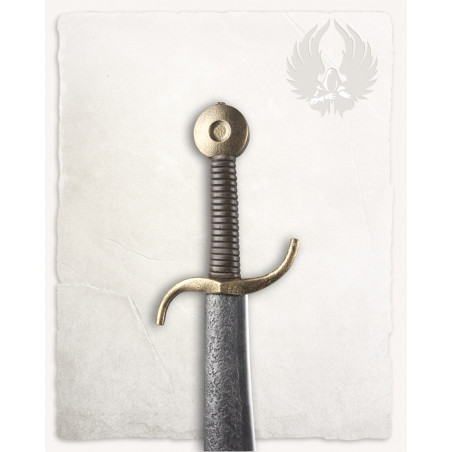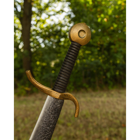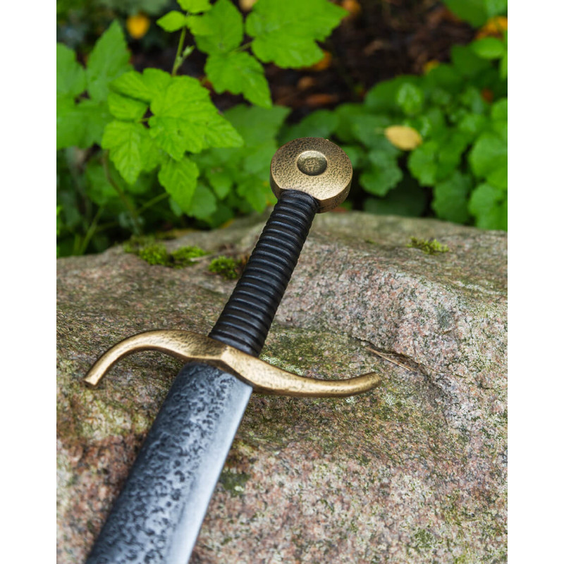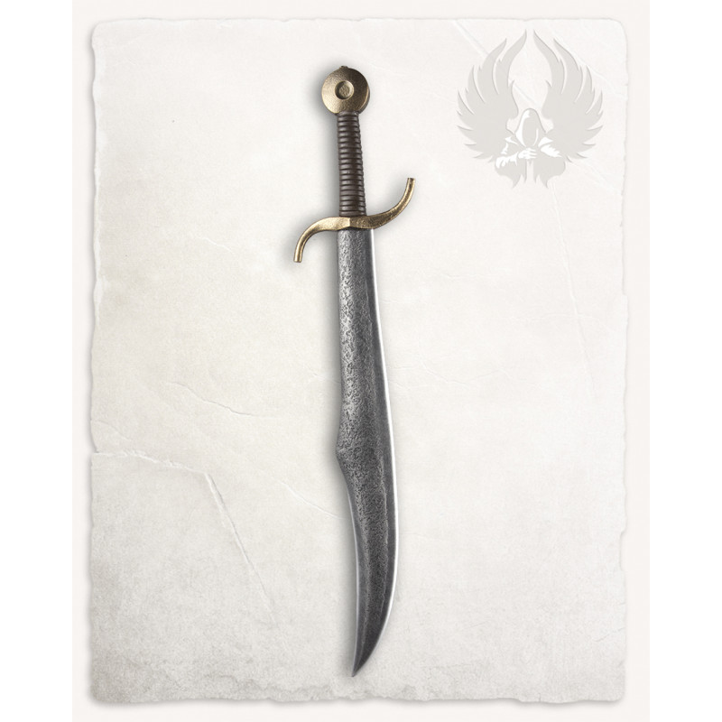 Zmatowione złoto z postarzałym wyglądem i brązowa, skórzana rękojeść sprawiają, że wygląd broni jest niezwykle realistyczny, a obsługa łatwa i pewna. Ostrze w kolorze stali z srebrnymi akcentami wykonane jest z wyjątkowo trwałej pianki Calimacil, zapewniającej lata bezpiecznej zabawy. Prostota tej broni zwiększa jej uniwersalność.