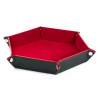 • Dice tray 23 cm wykonany ze skóry i aksamitu. Doskonały wybór aby utrzymać kostki w jednym miejscu i wygłuszyć dźwięk ich toczenia się. Dice tray jest wykonany ze skóry, a w środku wyłożony aksamitem. W narożnikach znajdują się wytrzymałe, metalowe napy dzięki którym możemy płaską matę zmienić w miseczkę do rzucania kośćmi. Materiał: Skaj