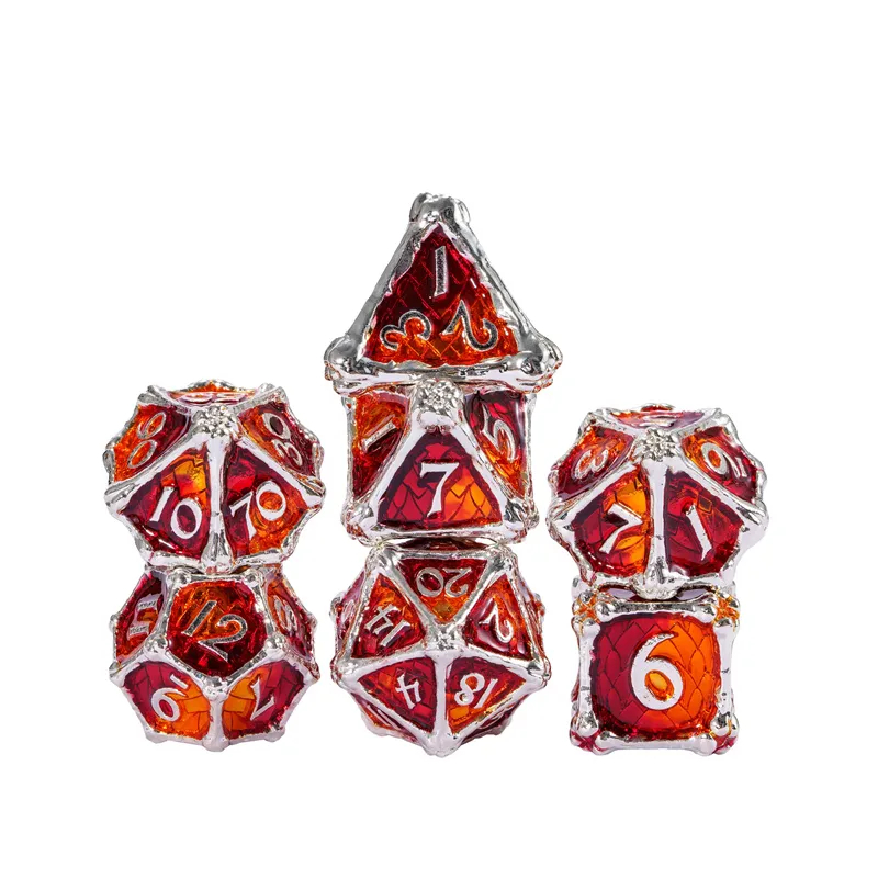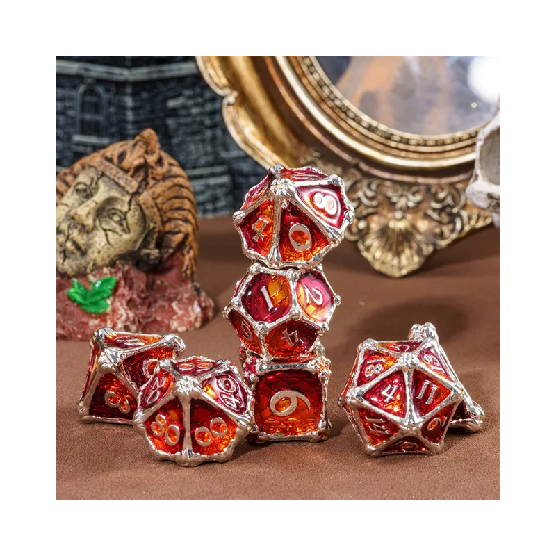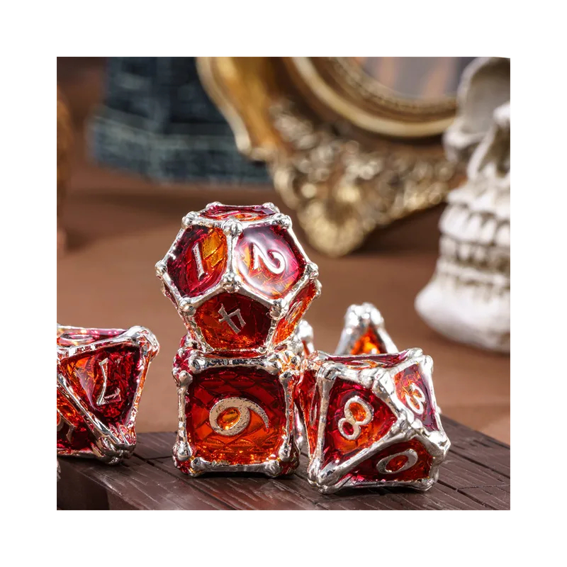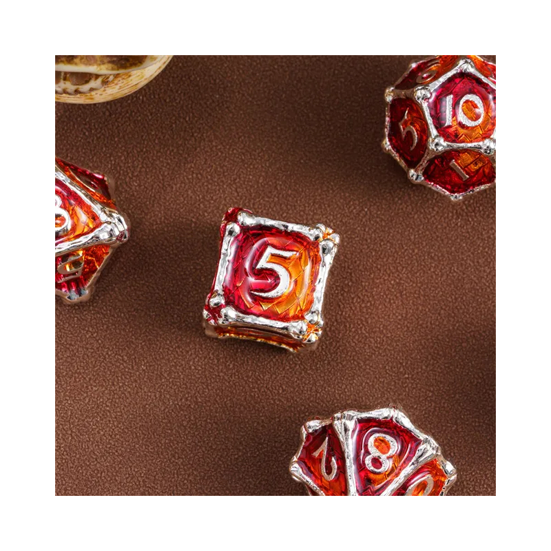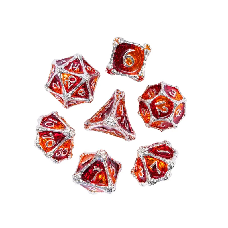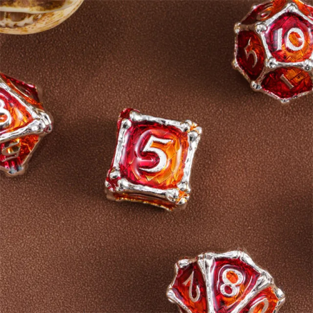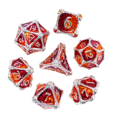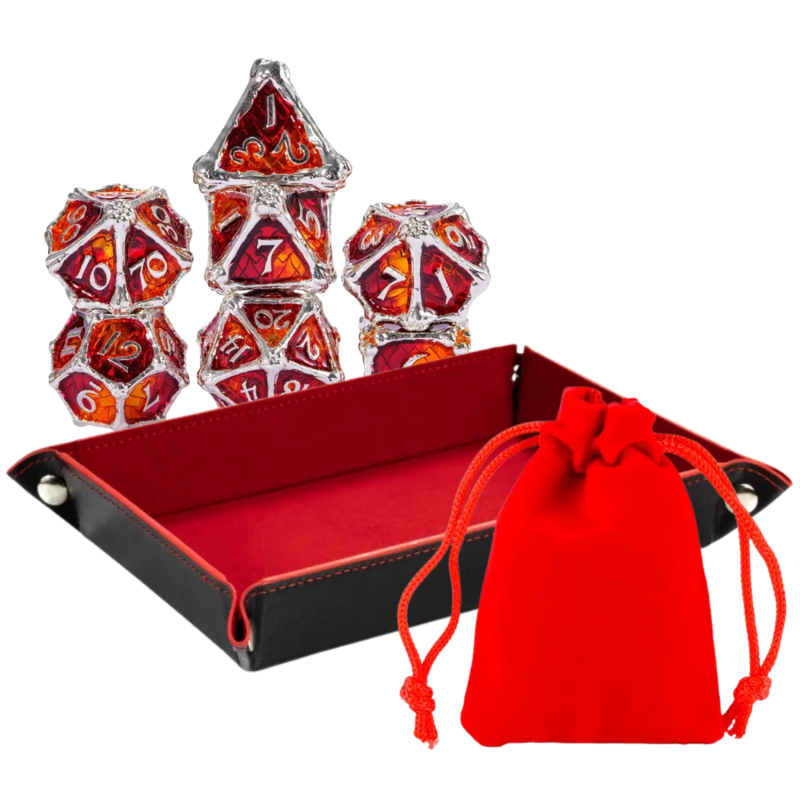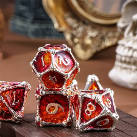 • Zestaw 7 kości wykonanych z metalu. Idealnie nadają się do każdego systemu i dla każdego gracza.