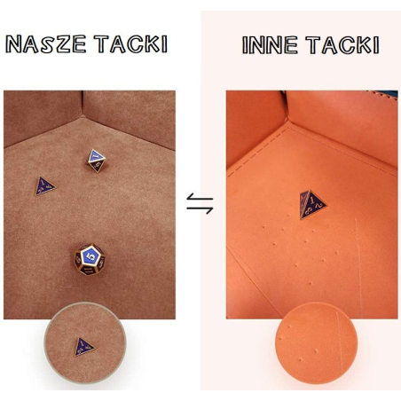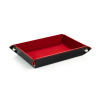 • Dice tray 22x16 cm wykonany ze skóry i aksamitu. Doskonały wybór aby utrzymać kostki w jednym miejscu i wygłuszyć dźwięk ich toczenia się. Dice tray jest wykonany ze skóry, a w środku wyłożony aksamitem. W narożnikach znajdują się wytrzymałe, metalowe napy dzięki którym możemy płaską matę zmienić w miseczkę do rzucania kośćmi. Materiał: Skaj