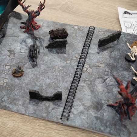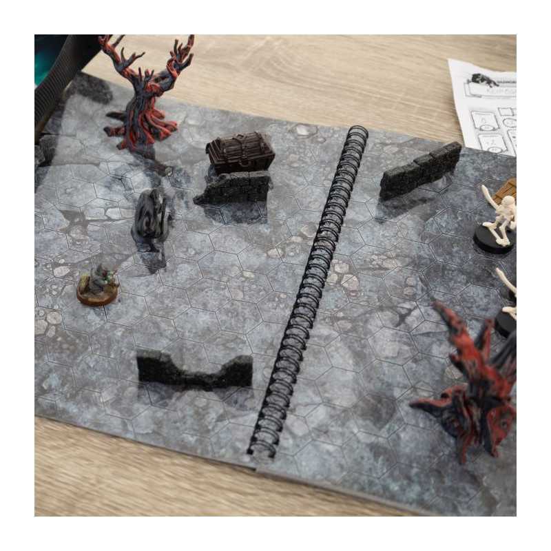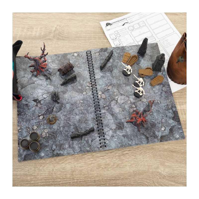 Księga RPG Fantasy A4 z siatką heksagonalną to must-have dla każdego fana gier fabularnych. W środku znajdziesz 14 szczegółowych, suchościeralnych map bitewnych, idealnych do rozgrywania sesji w świecie fantasy. Od pustyń, przez lochy, po brukowane ulice – każda mapa wprowadza graczy w nową przygodę. Uniwersalna siatka heksagonalna umożliwia łatwe dostosowanie książki do wielu systemów RPG, oferując wielokrotne wykorzystanie plansz.