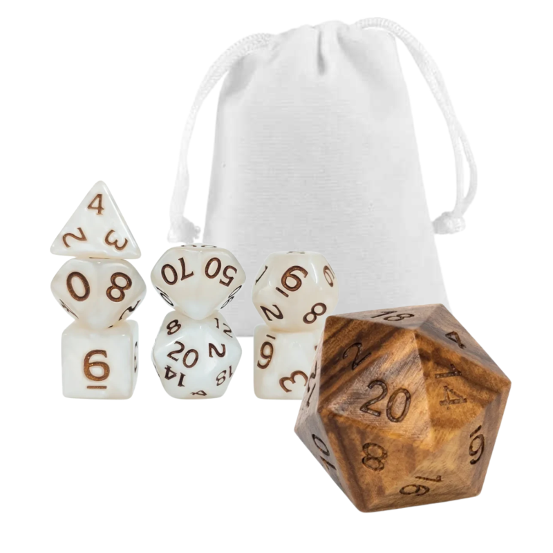 Wybierz komplet kości z tacką do rzucania, aksamitnym woreczkiem pod kolor, monetami, albo zmywalną matą. Obdaruj kogoś zestawem nietypowych kostek, które świecą w ciemności lub całym niezbędnikiem gadżetów RPG – w sam raz dla początkującego i zaawansowanego gracza!